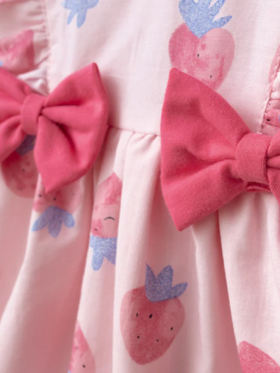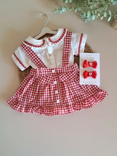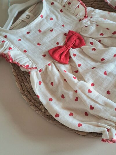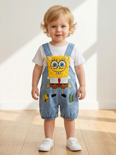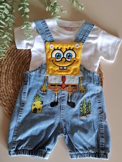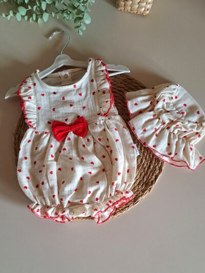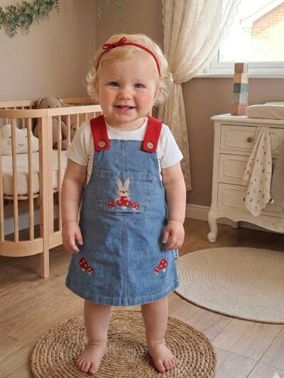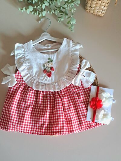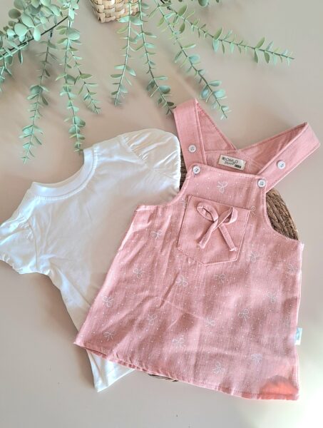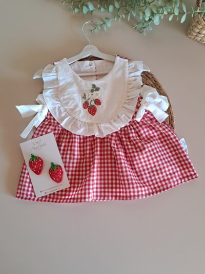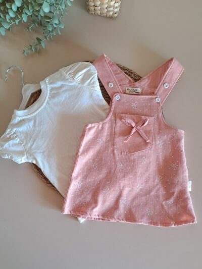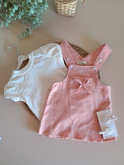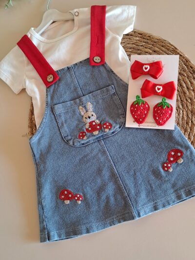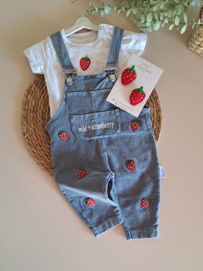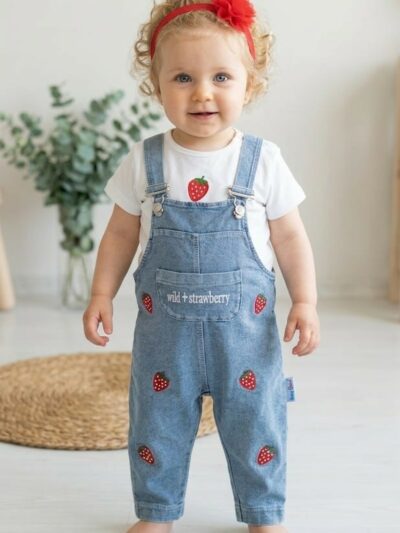 Pamuk Çilek Nakışlı Kot Salopet ve Tişört %100 Pamuk