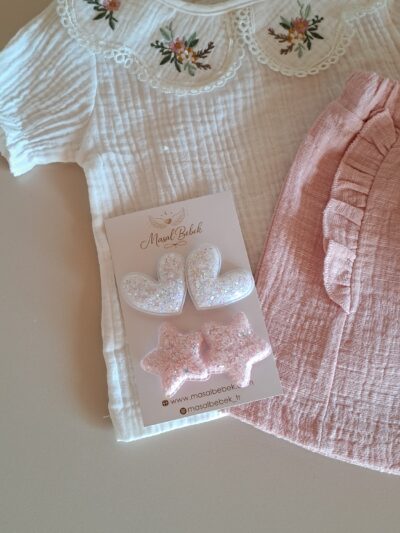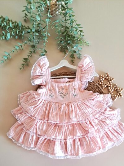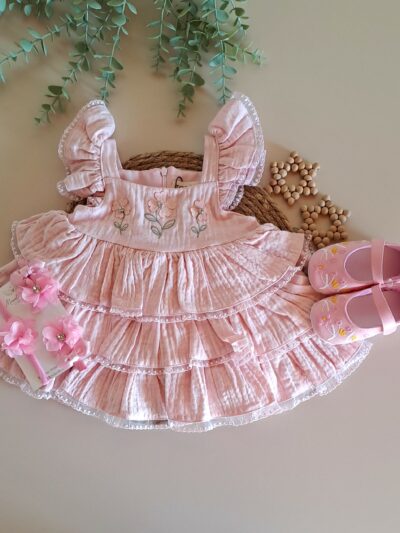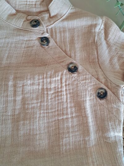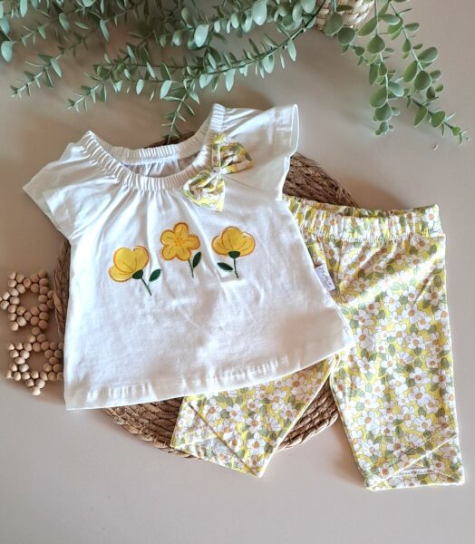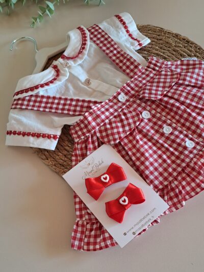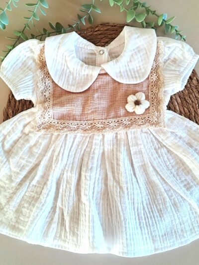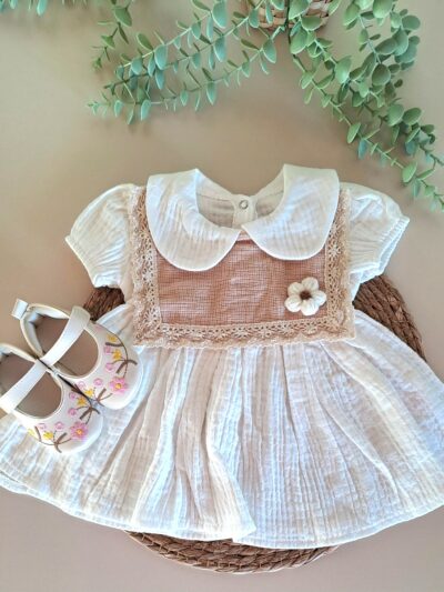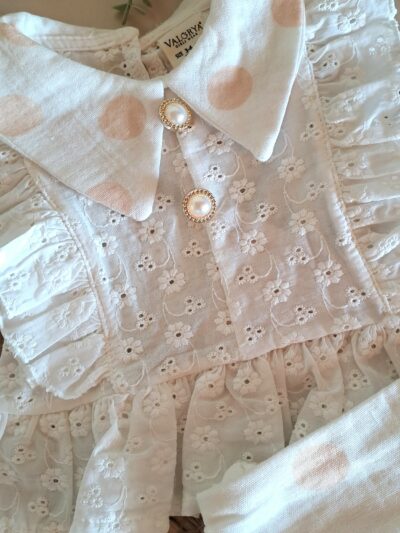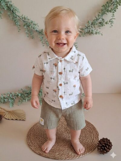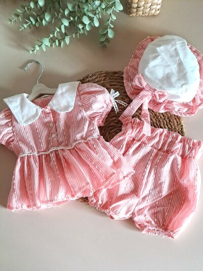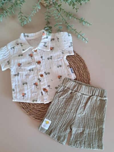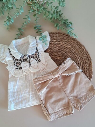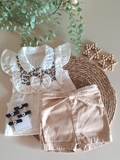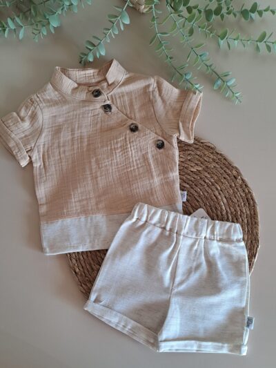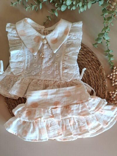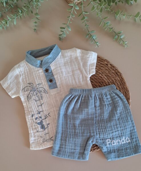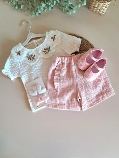 Yaka Nakışlı Bluz ve Fırfır Detay Şort %100 Pamuk Müslin Takım