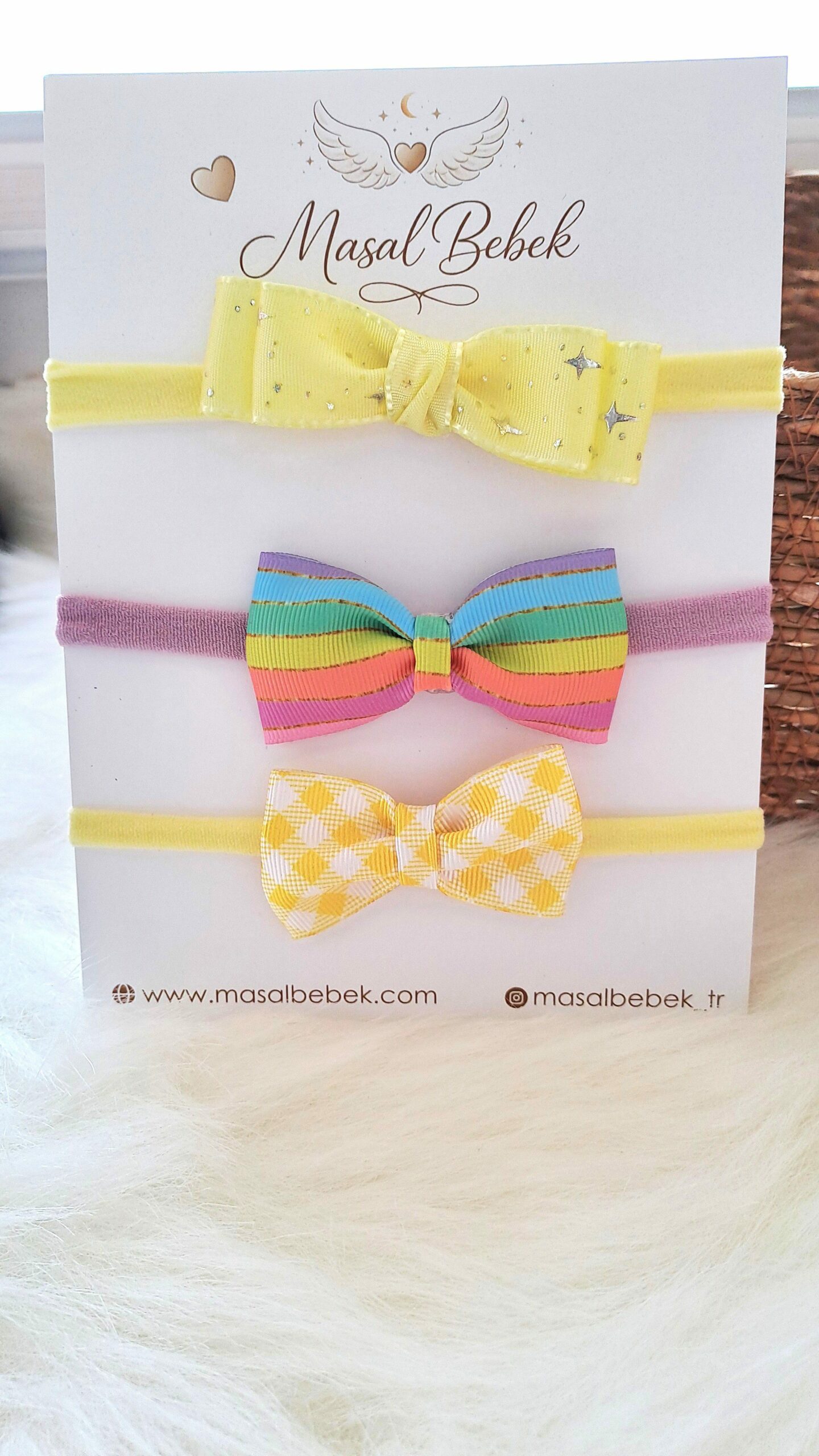 Bebekler için tasarlanan bu sarı saç bandı seti, miniklerin zarafetini tamamlamak ve her anı daha özel kılmak için harika bir seçim.
