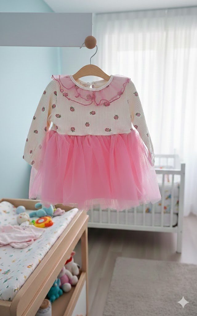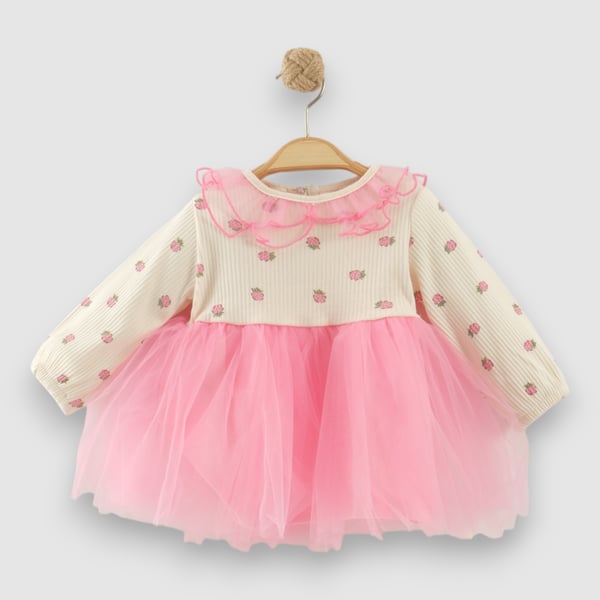 Yakası tül model pembe rengiyle göz alıcı bir görünüme sahip kız bebek tütü elbisesi, özel günler, günlük şıklık için ideal bir tasarım sunar. Yumuşak üst kumaşı bebeğinizin hassas cildine nazikçe temas ederken, kabarık tütü eteği elbiseye zarif ve sevimli bir hava katar. Hafif ve rahat yapısı sayesinde bebeğinizin hareketlerini kısıtlamaz. Bebek sağlığını yüksek kalite standartlarıyla buluşturan Masal Bebek, en değerli varlıklarınız için güvenli ve nitelikli ürünler sunar