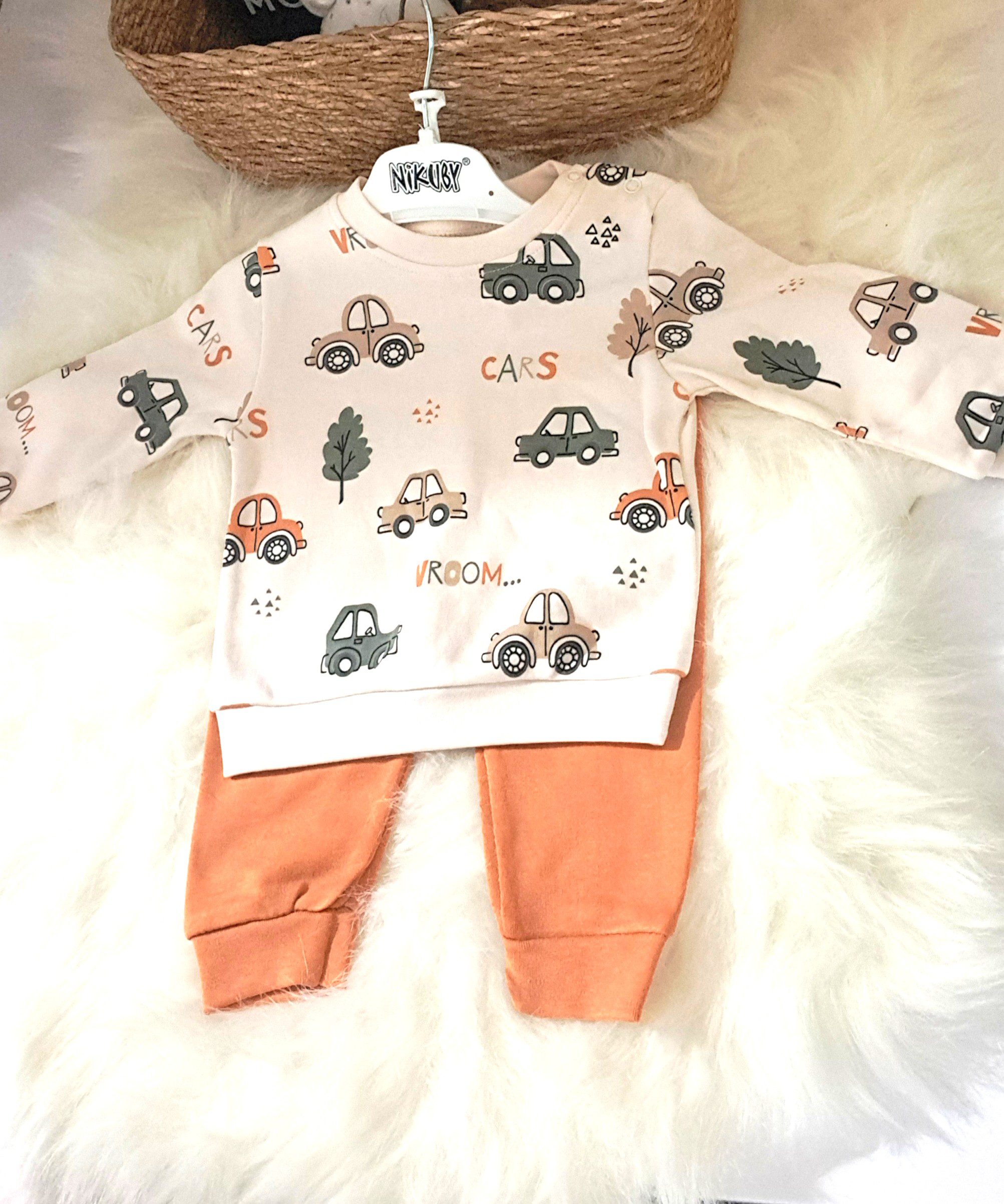 Araba desenleriyle tasarlanan erkek bebek takımı, hem sevimli hem de rahat bir kullanım sunar. Yumuşak ve esnek kumaşı sayesinde bebeğinizin hassas cildine uyum sağlar, gün boyu konforlu bir deneyim yaşatır.Hcareket özgürlüğü sağlayan kalıbı ile günlük kullanım için ideal olan bu takım, eğlenceli araba deseniyle miniklerin favorisi olacak.