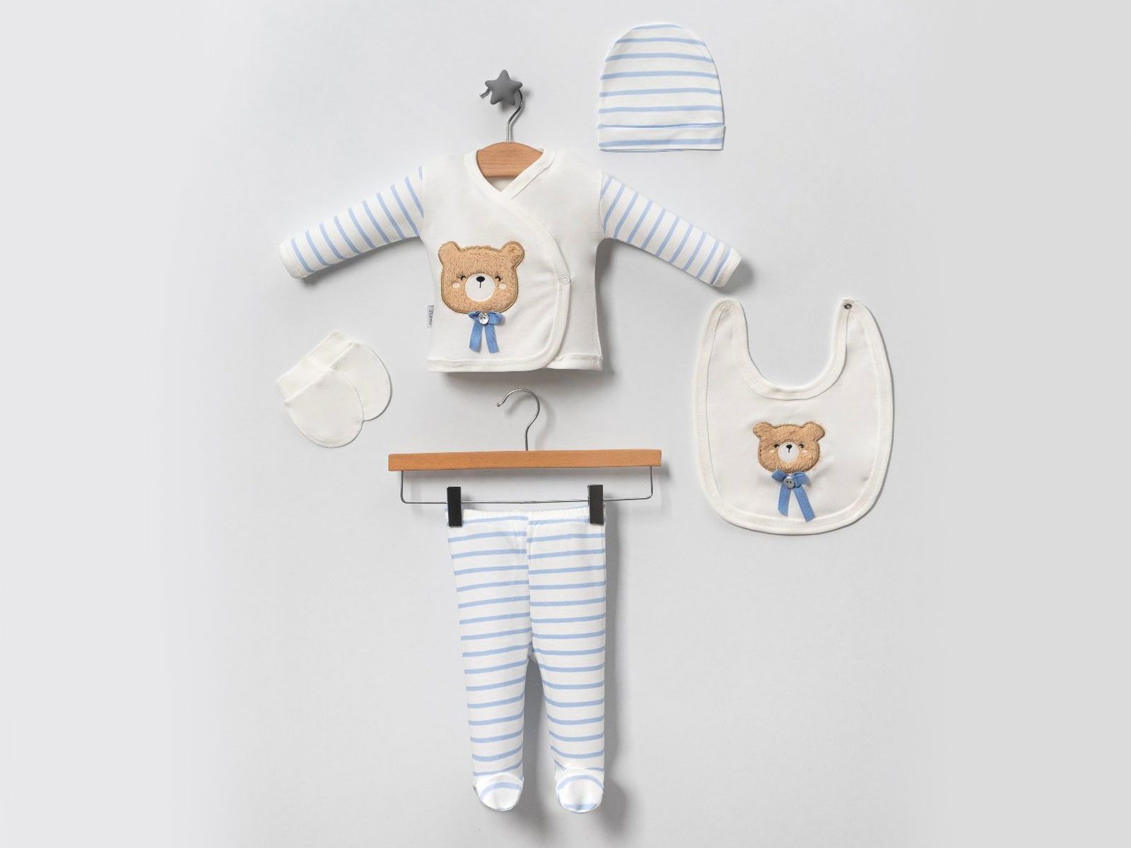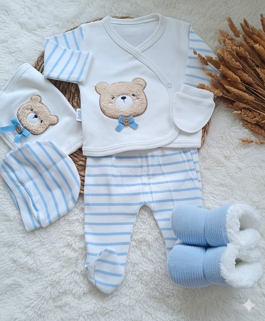 Ayıcık  Modelli Fiyonklu 5li Zıbın Seti