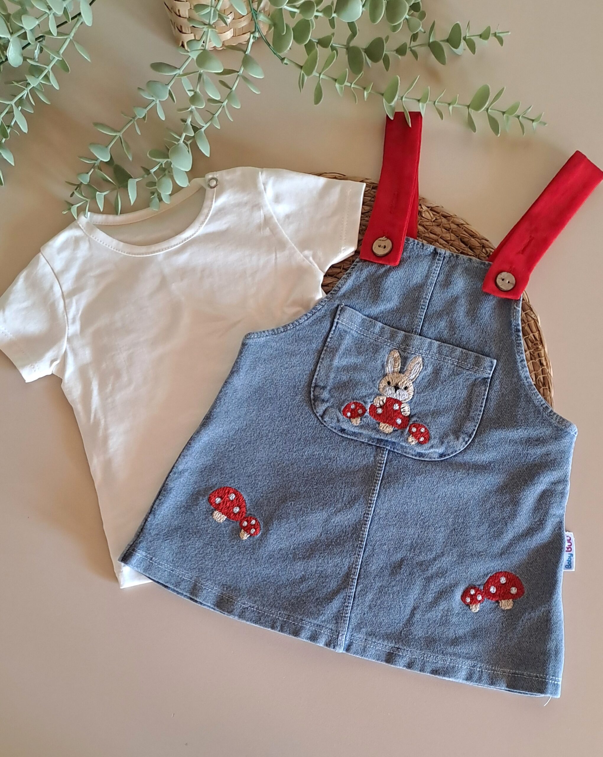 Badili Mantar Nakışlı Ayarlanabilir Kot Salopet Elbise; askısı ayarlanabilir özelliktedir. Elbisenizin gardırobuna hem eğlence hem de zamansız bir şıklık katın! Dayanıklı yapısı sayesinde oyun saatlerinin en sadık eşlikçisi olacak bu salopet elbise, ayarlanabilir askılarıyla uzun süreli kullanım sunar. İçine giydireceğiniz her tişörtle yepyeni bir tarz yaratabilirsiniz. Ürün yumuşak kot özelliktedir, bebeğinizi rahatsız etmez.