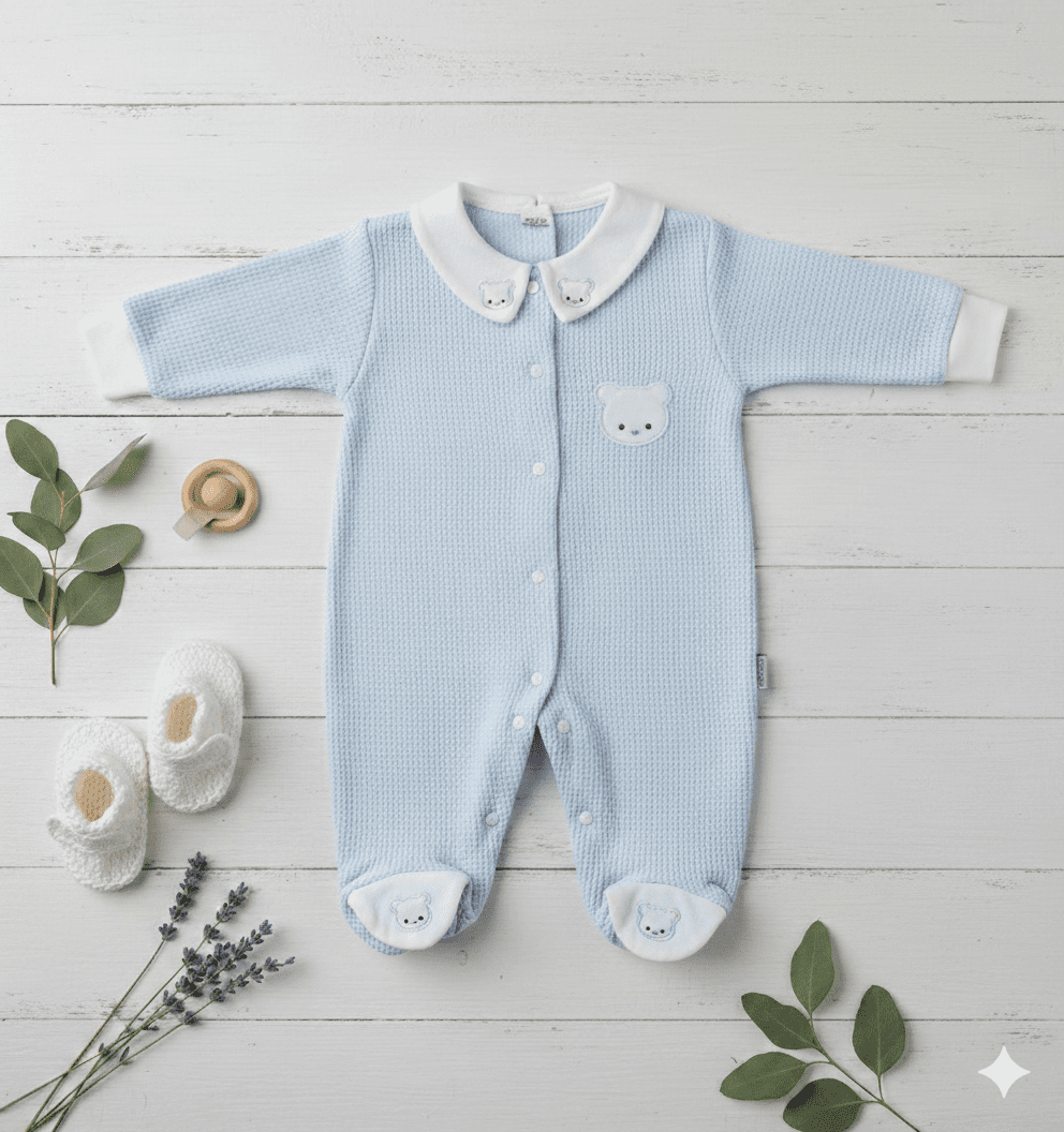 Erkek Bebek Tulum Bebe Yakalı Ayıcıklı