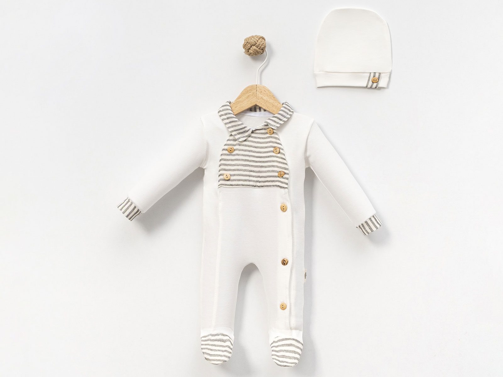 Erkek Bebek Tulum Düğmeli Şapkalı
