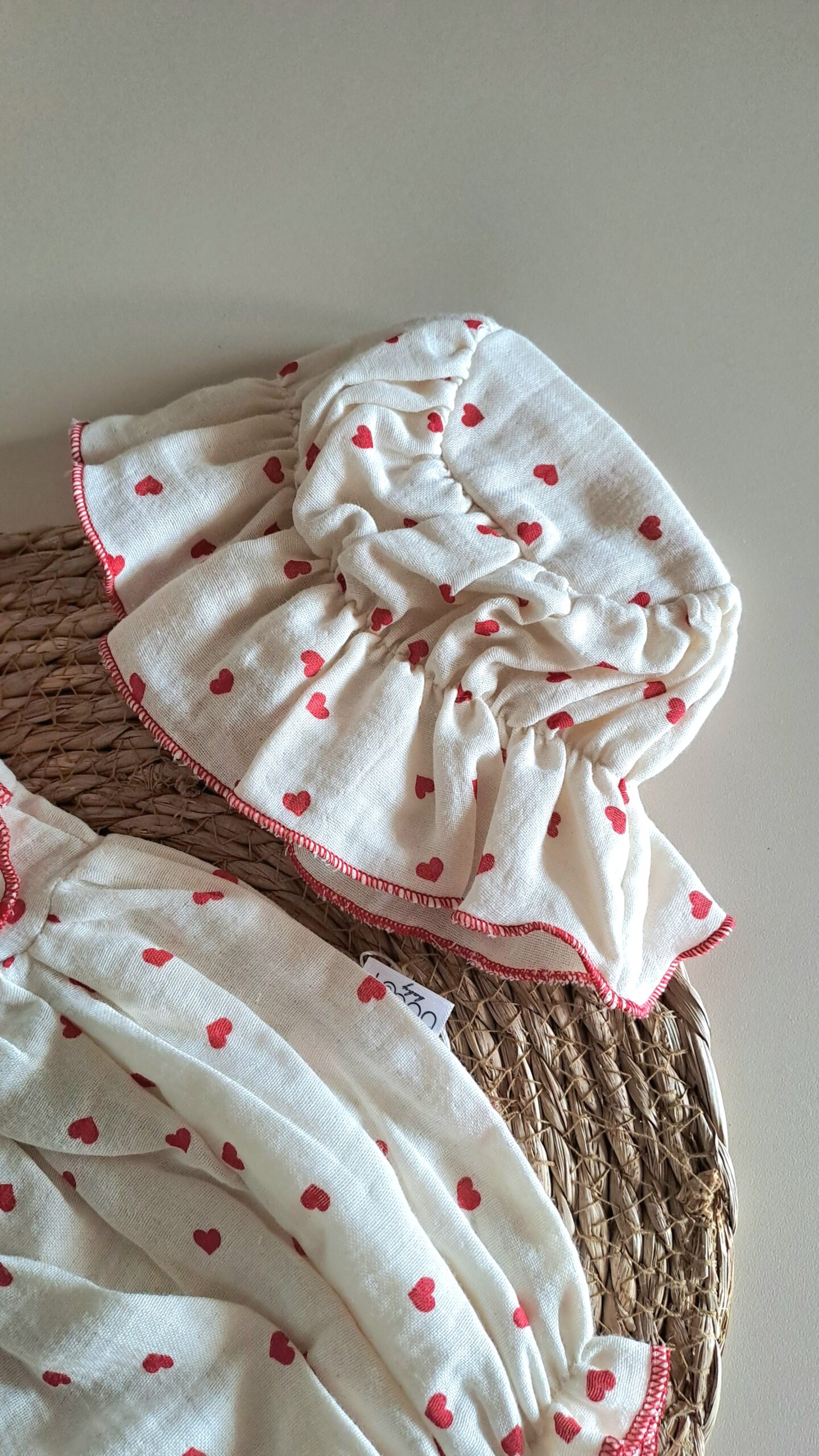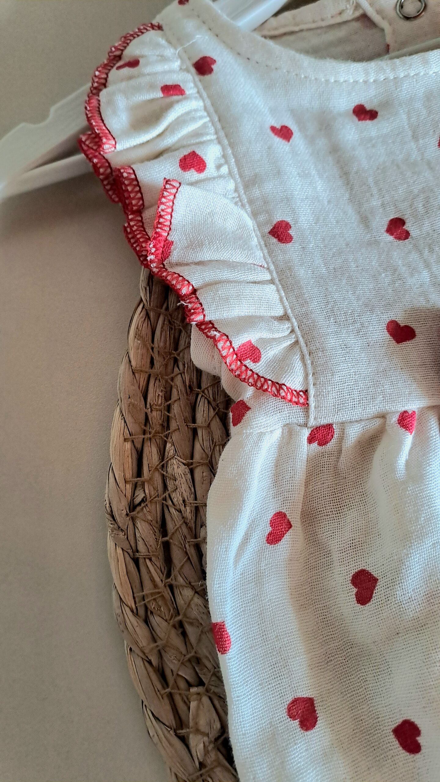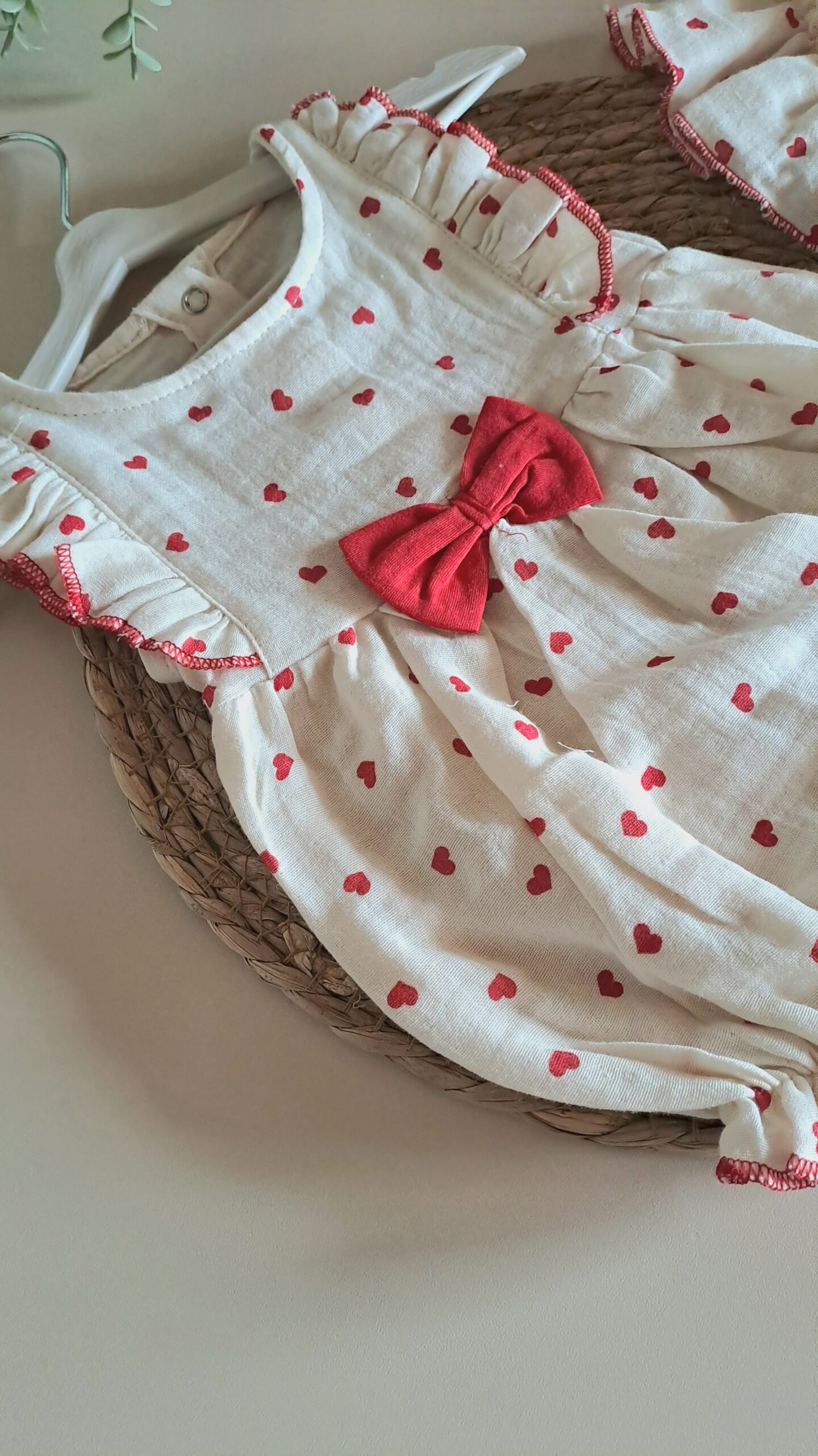 Fiyonklu Kalpli Şapkalı Bebe Barbatöz Tulum %100 Pamuk Müslin