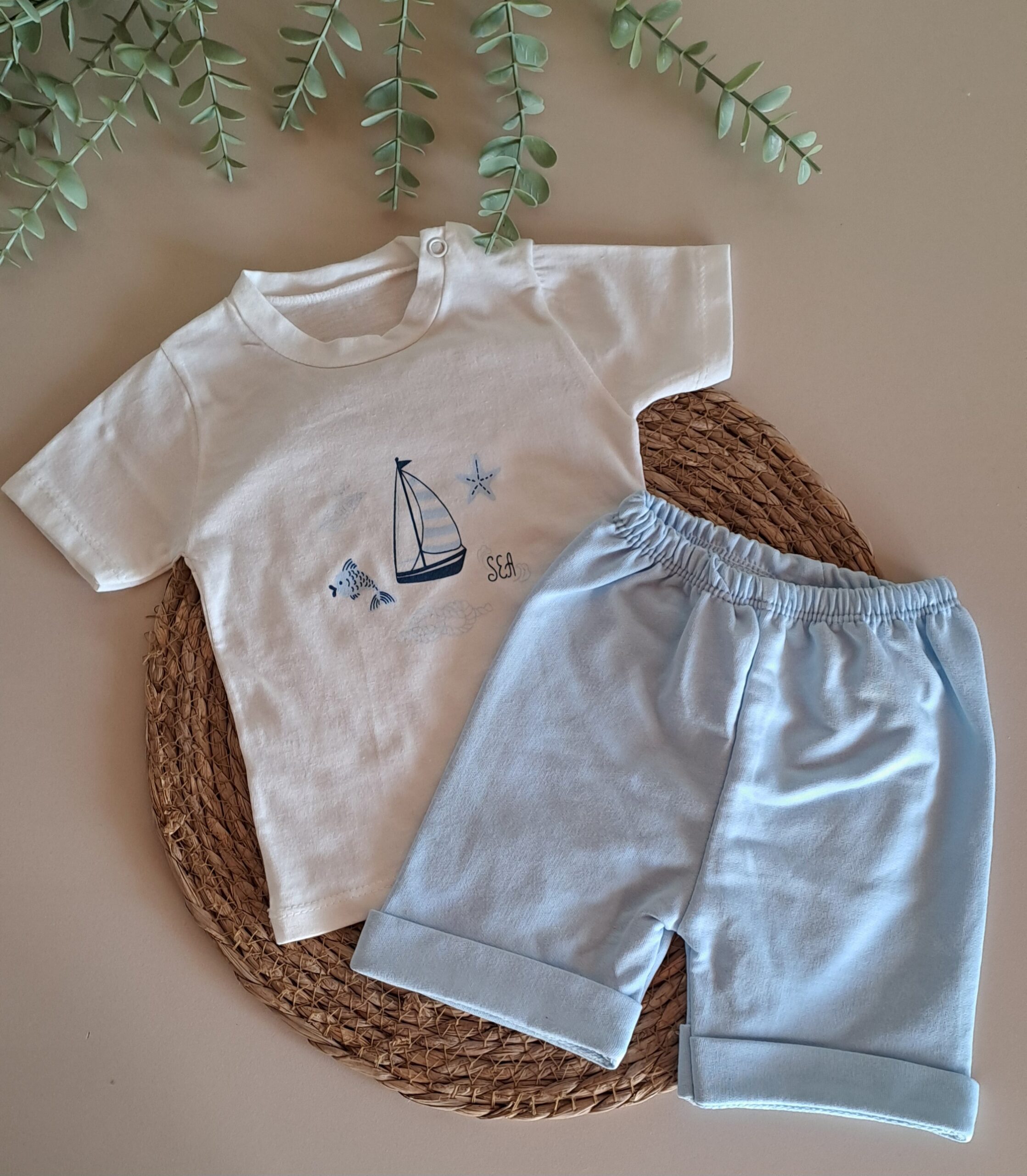 Gemi Baskılı Kısa Şortlu Pamuk Takım