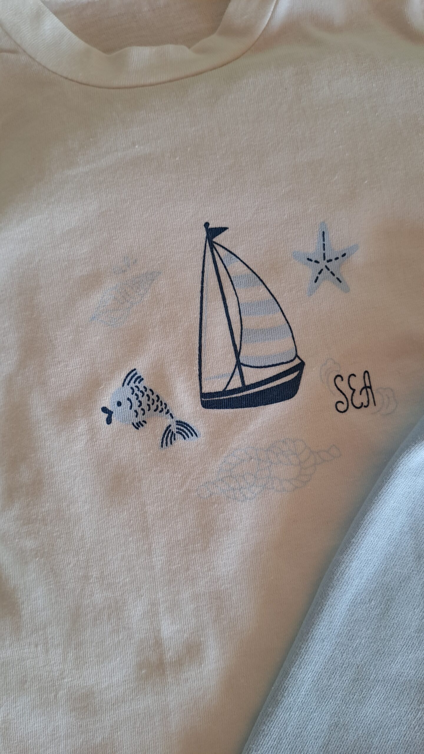 Gemi baskılı pamuk takımımızla yaz çok daha eğlenceli. Tişörtü ayrı, altı ayrı kombinleyin; bir takımla onlarca farklı stil yaratın!
