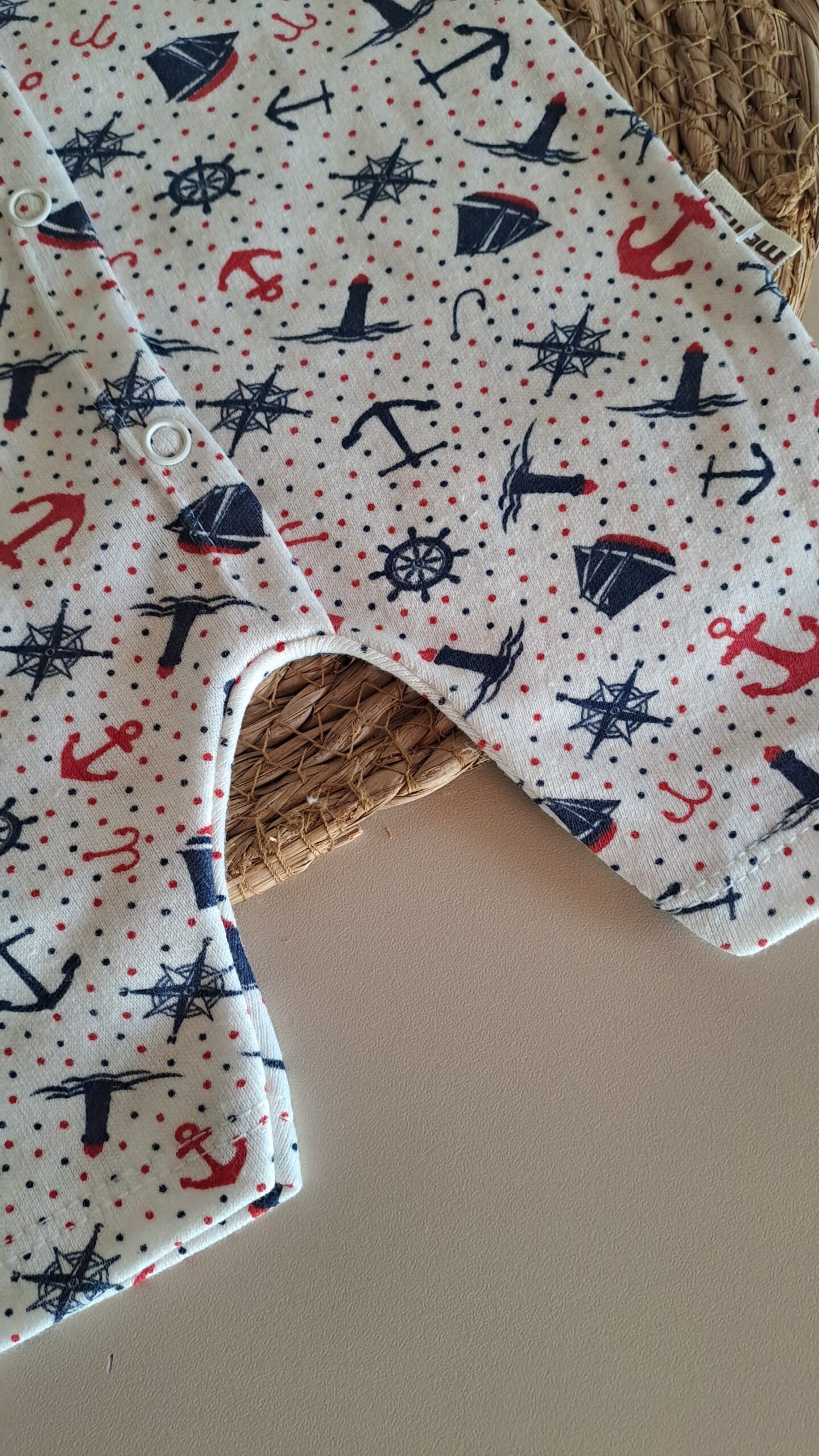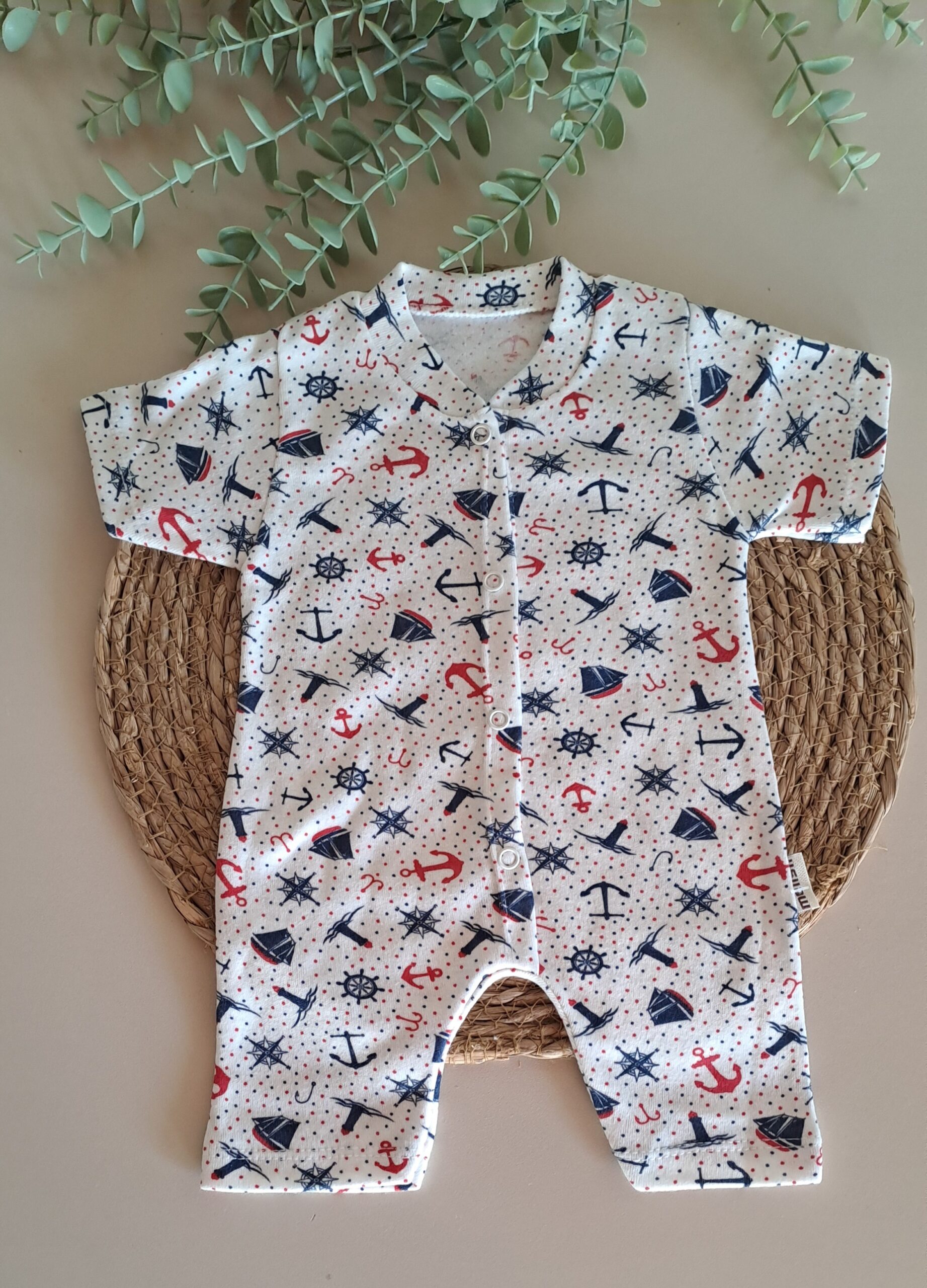 Gemi Detaylı tulum, şık duruşuyla özel günlerde de günlük gezintilerde de en iyi eşlikçiniz olacak. Nefes alan doğal pamuk yapısıyla bebeğinizin hassas cildini terletmeden korur.