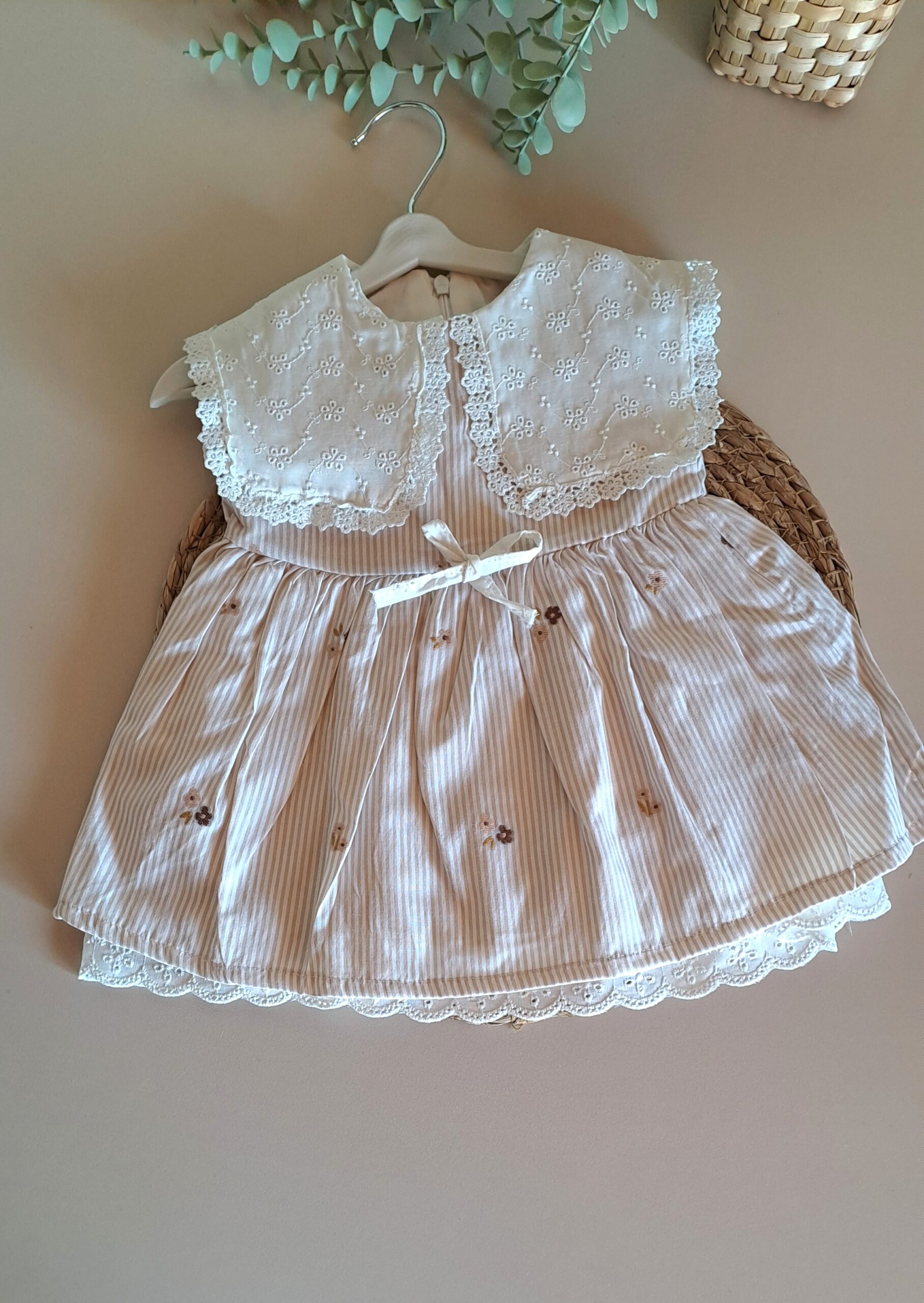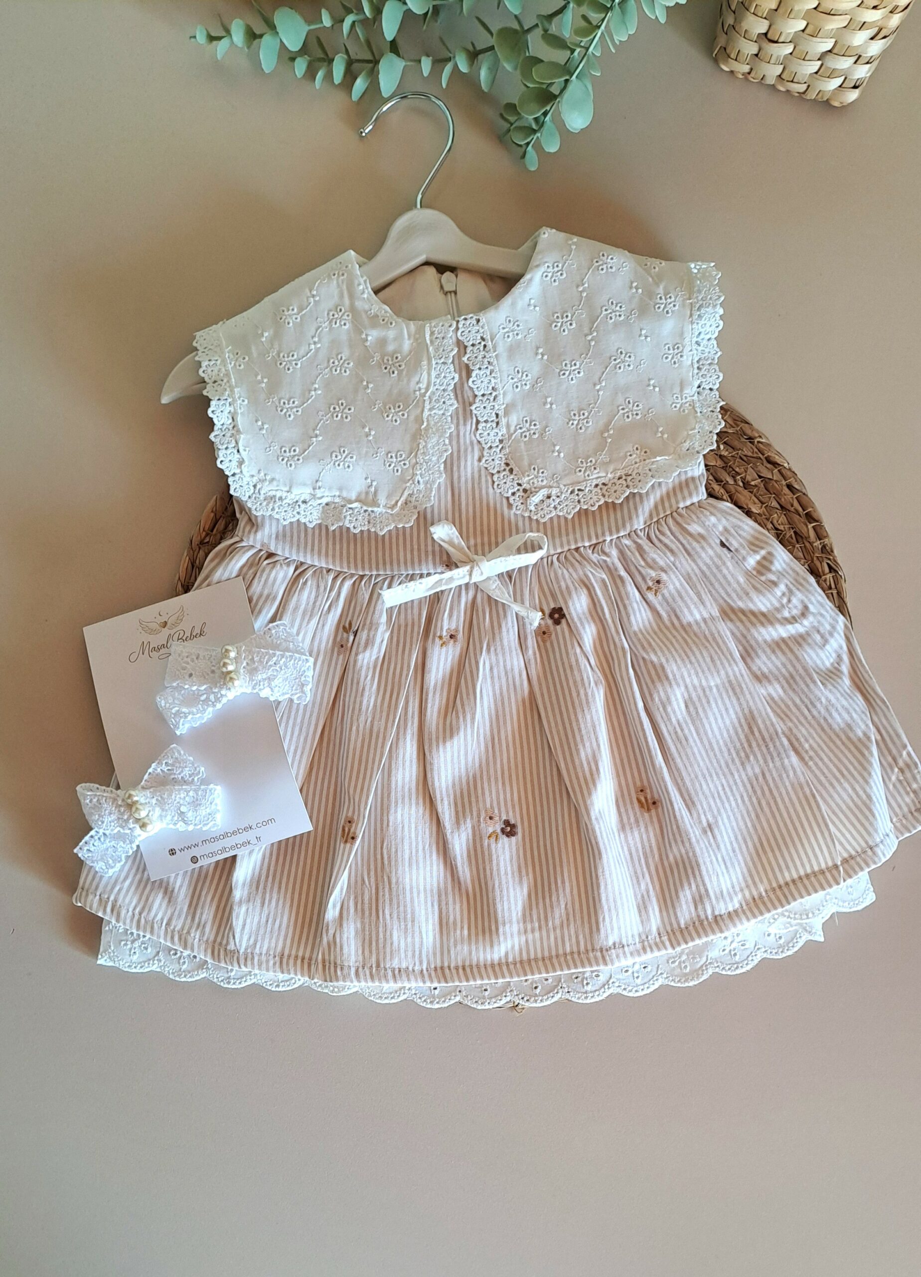 Kahve Fisto Geniş Yakalı %100 Pamuk Çiçek Nakışlı Elbise; kız bebek modasında geleneksel zarafeti modern bir konforla buluşturan bu tasarım, bebeğinizin en kıymetli anlarına eşlik etmek için hazırlandı. Kahverenginin sıcak tonu ve fisto kumaşın karakteristik dokusu, dayanıklılığı estetik bir duruşla birleştiriyor. Geniş yaka detayı ise bu klasiğe zamansız bir şıklık katıyor. Gardırobun en joker parçalarından biri olmaya aday bu tasarım, özel davetlerden park yürüyüşlerine kadar her ortama uyum sağlar. Farklı aksesuarlar ve katmanlarla dört mevsim boyunca stilize edilebilen bu fisto elbise, fonksiyonelliği şık bir imza ile sunuyor.