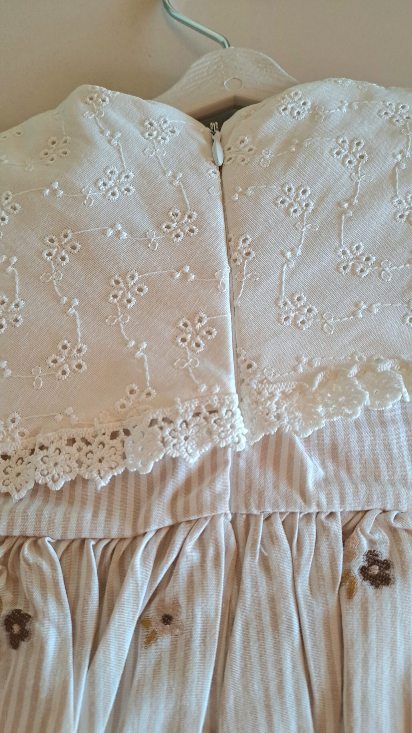 Kahve Fisto Geniş Yakalı %100 Pamuk Çiçek Nakışlı Elbise