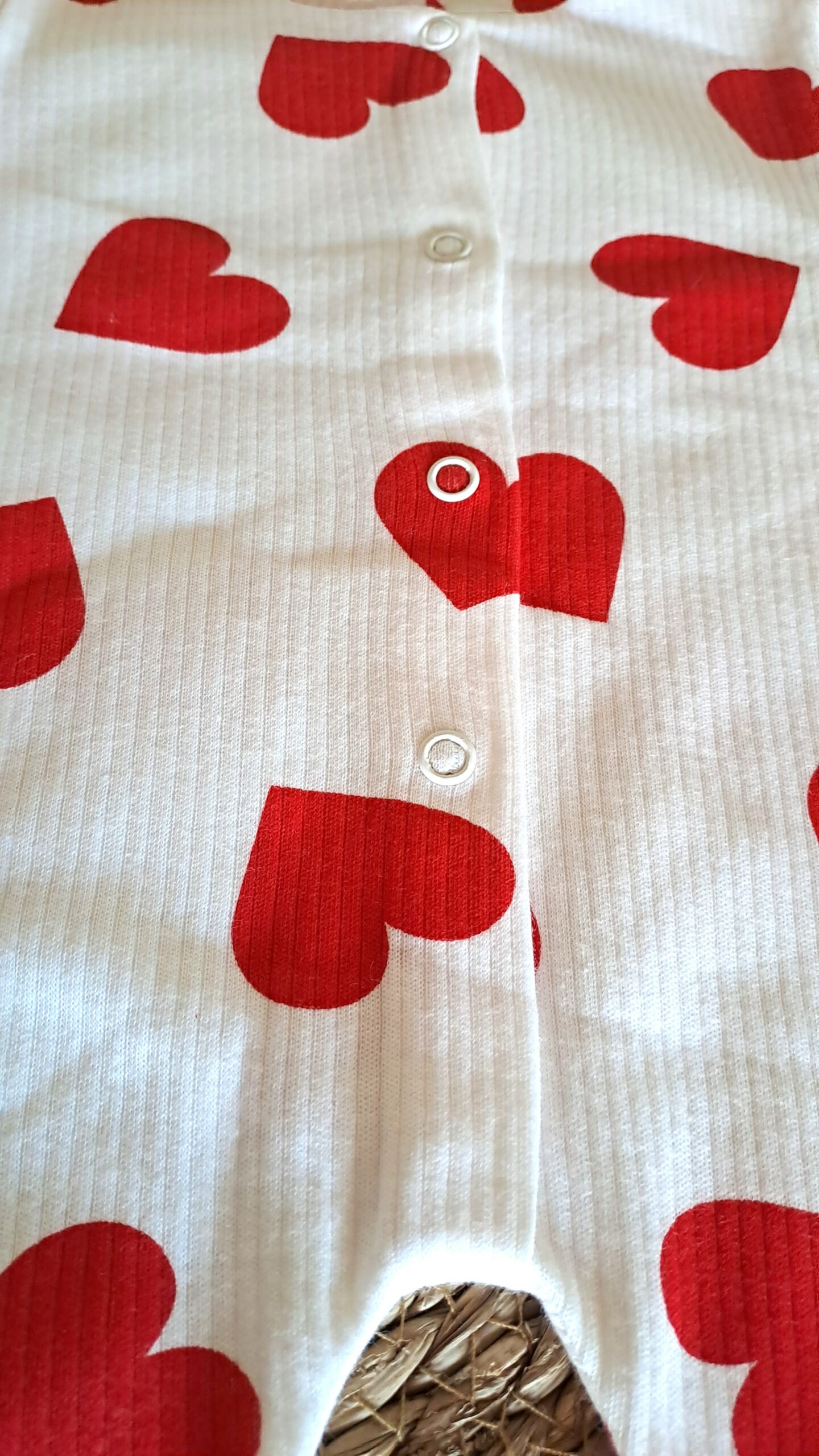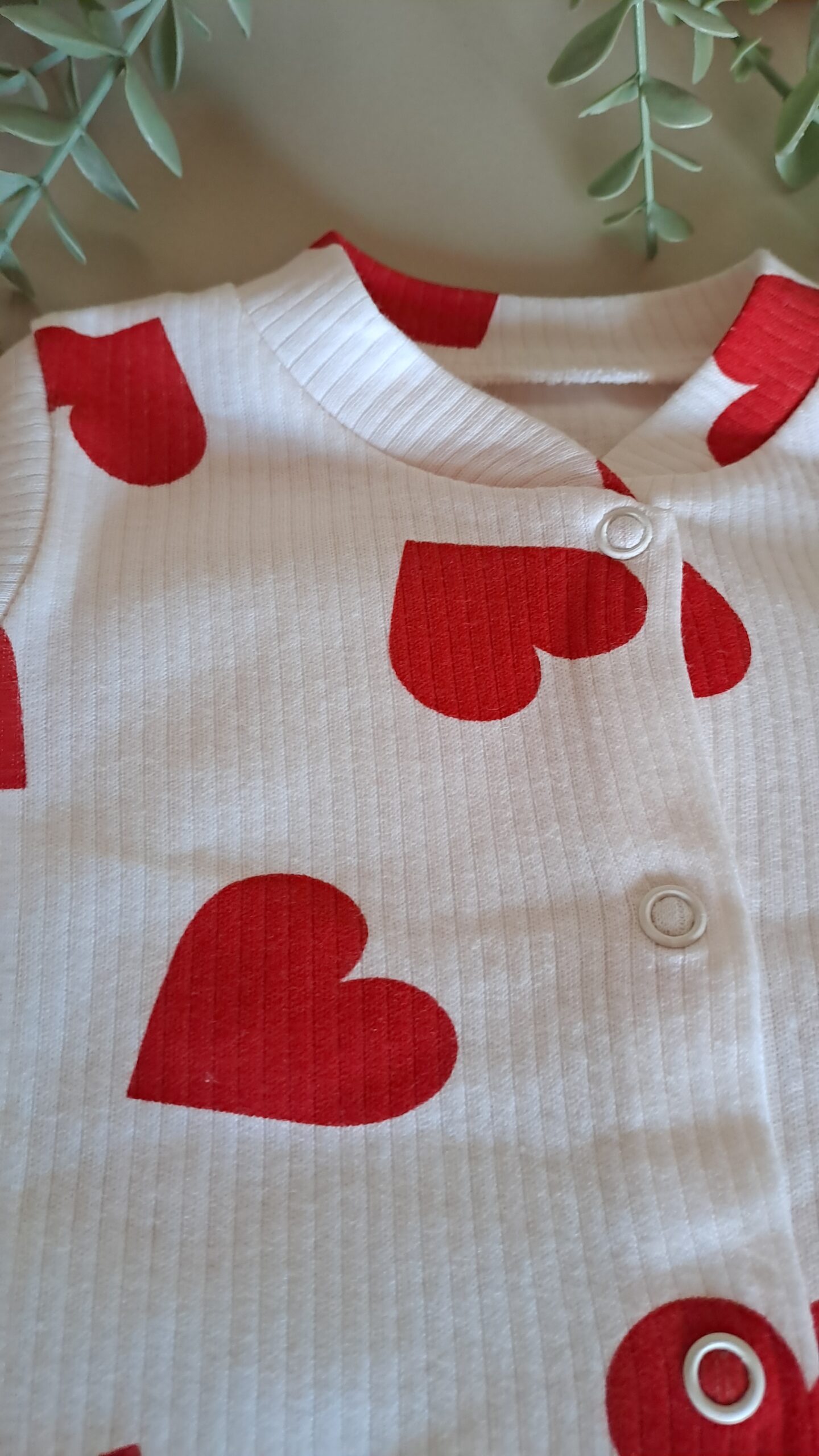 Yumuşacık dokusu ve sevgi dolu kalp desenleriyle tasarlanan bu tulum, minik prensesinizin hassas cildine en nazik dokunuşu sunuyor. %100 pamuklu yapısı sayesinde gün boyu nefes alırken, şık tasarımıyla her anı bir