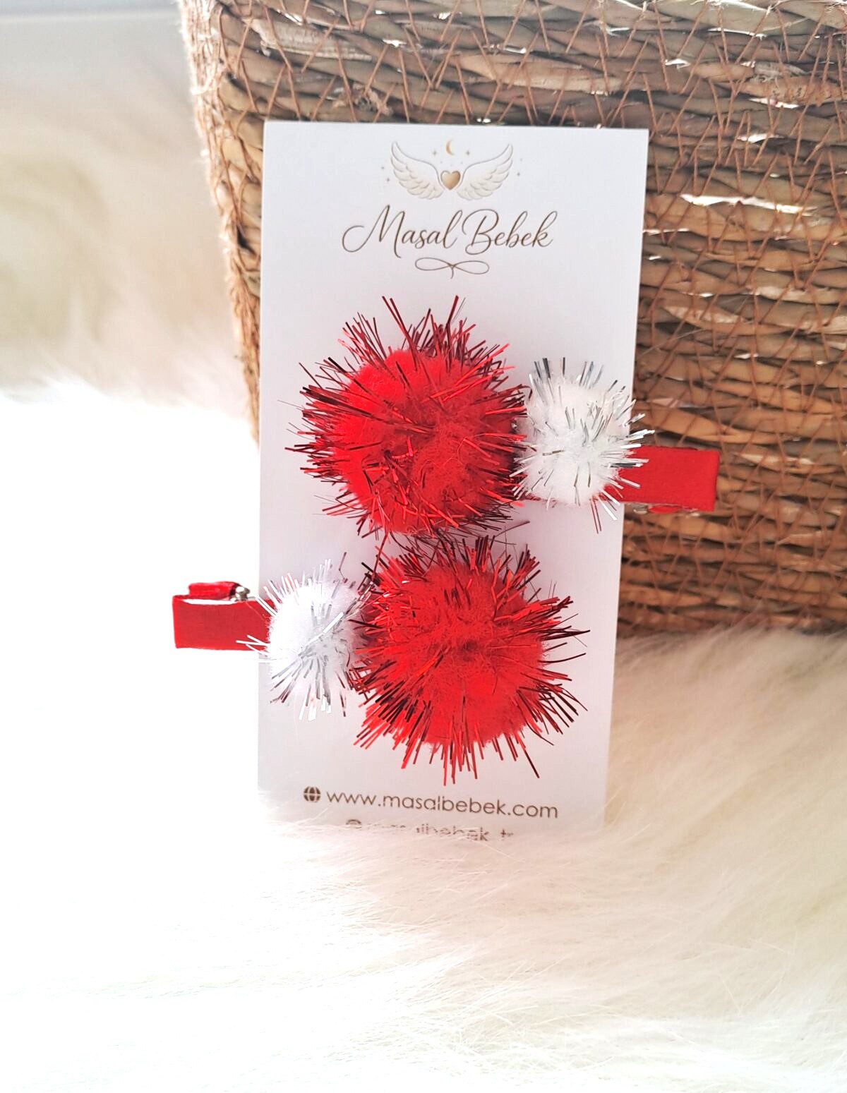 Kırmızı Beyaz Ponpon 2’li Set