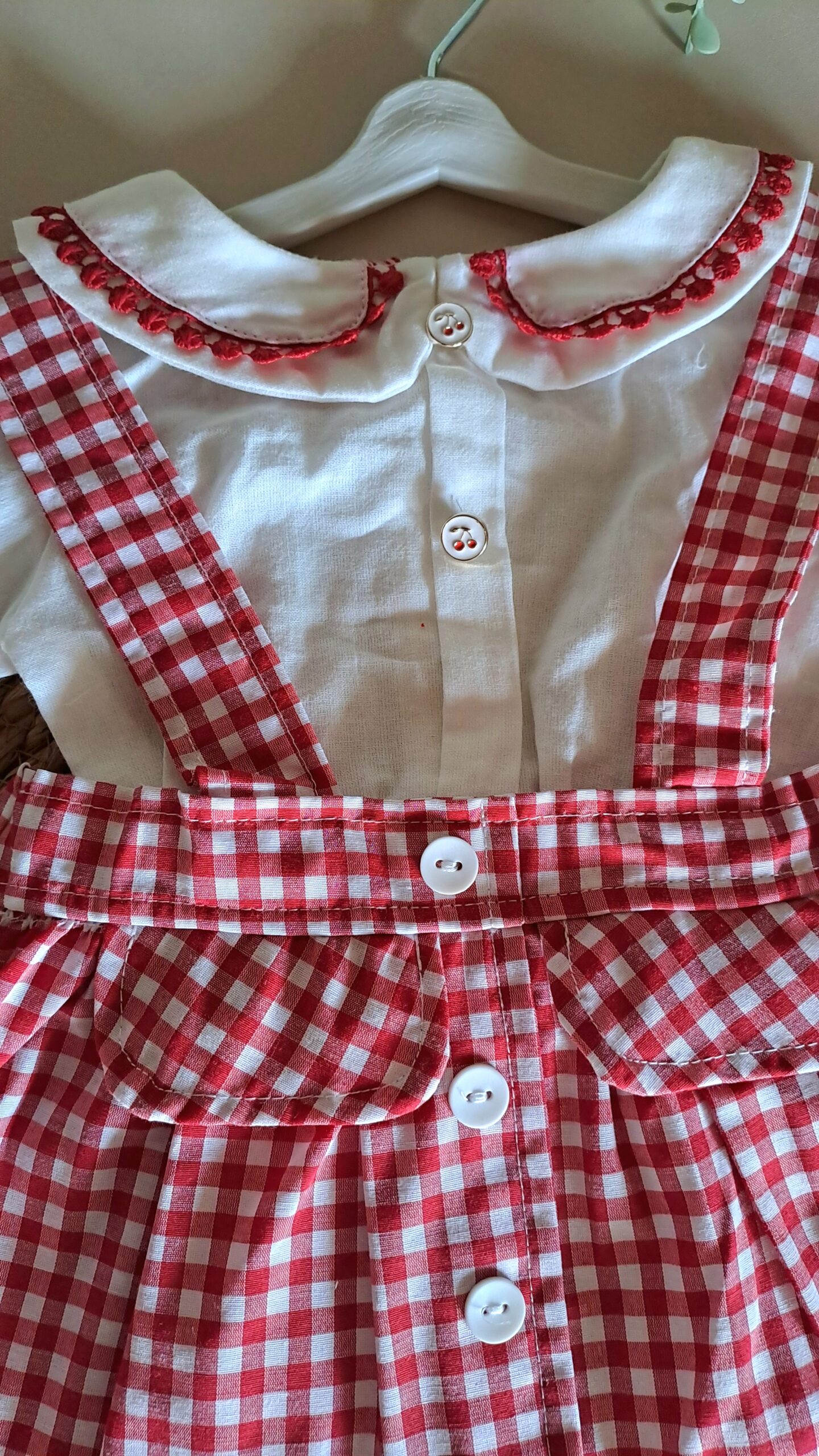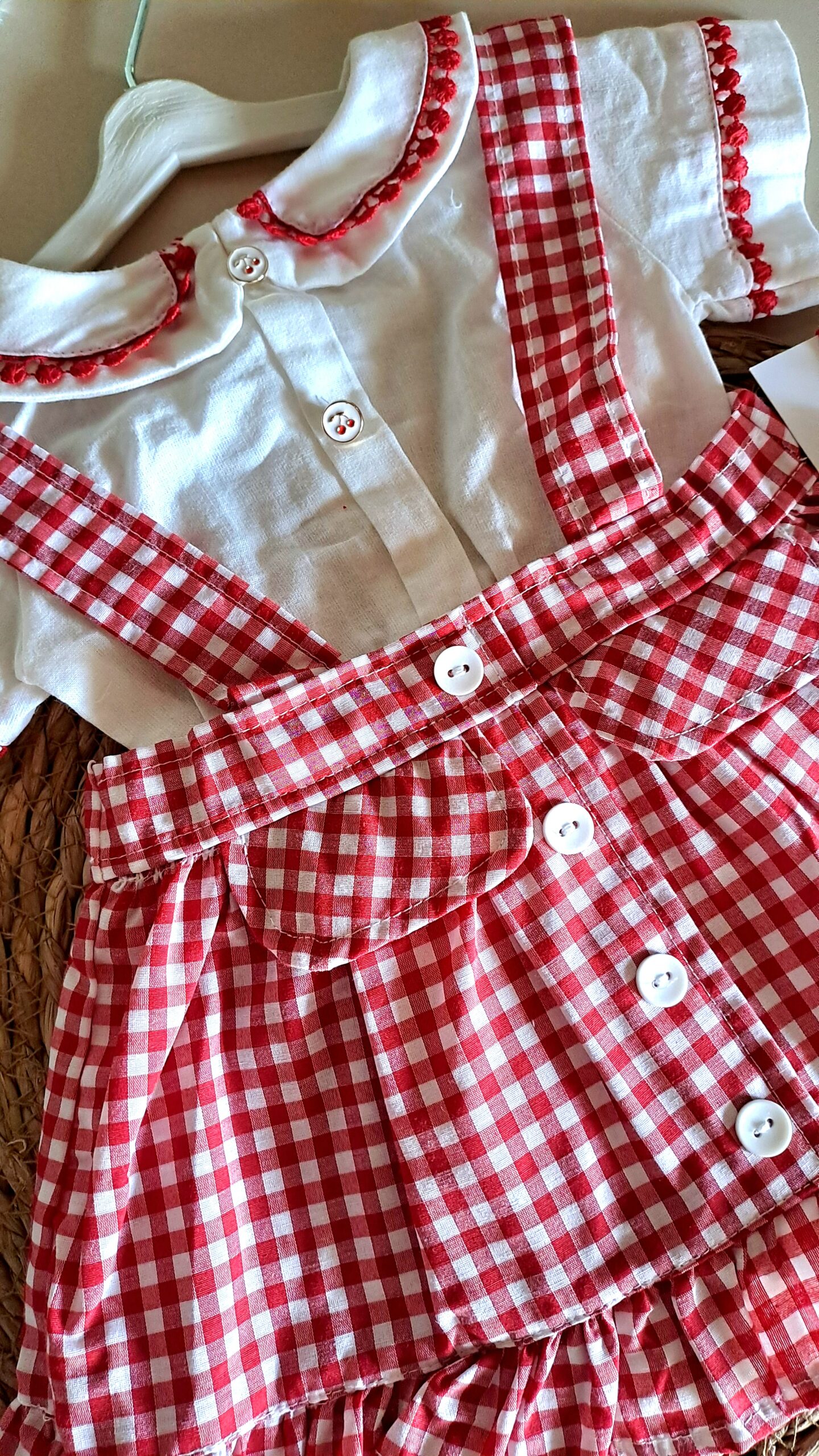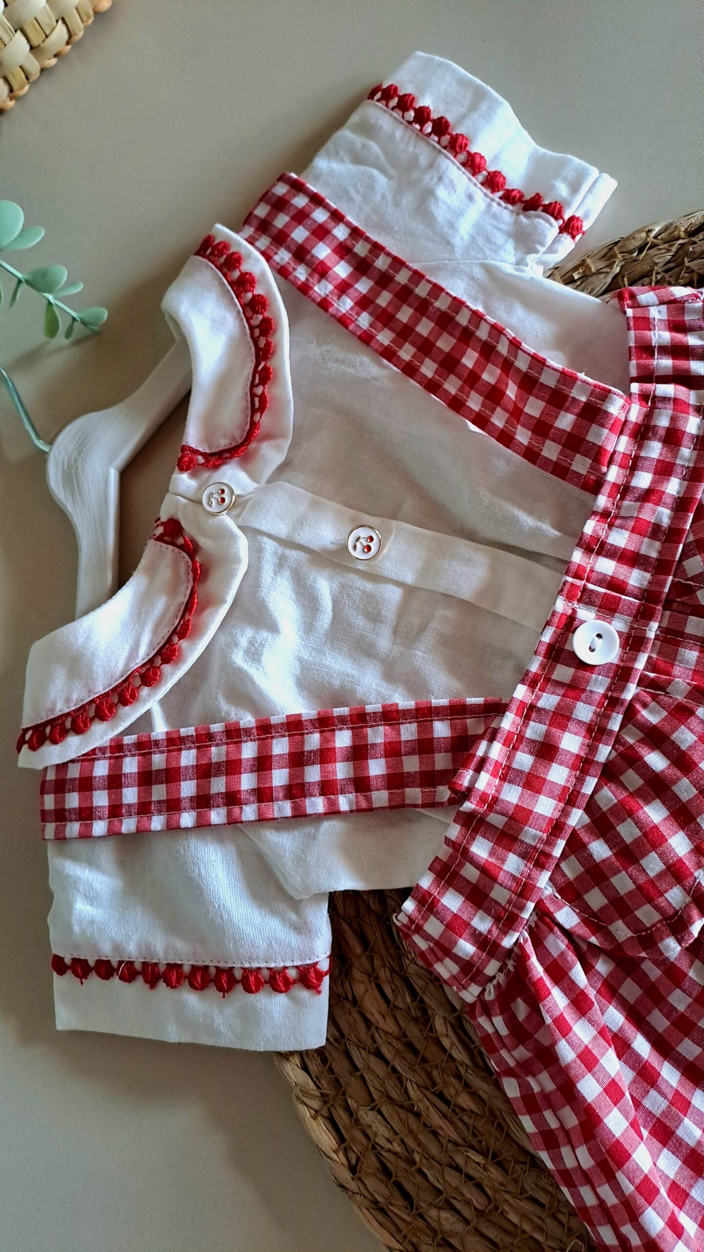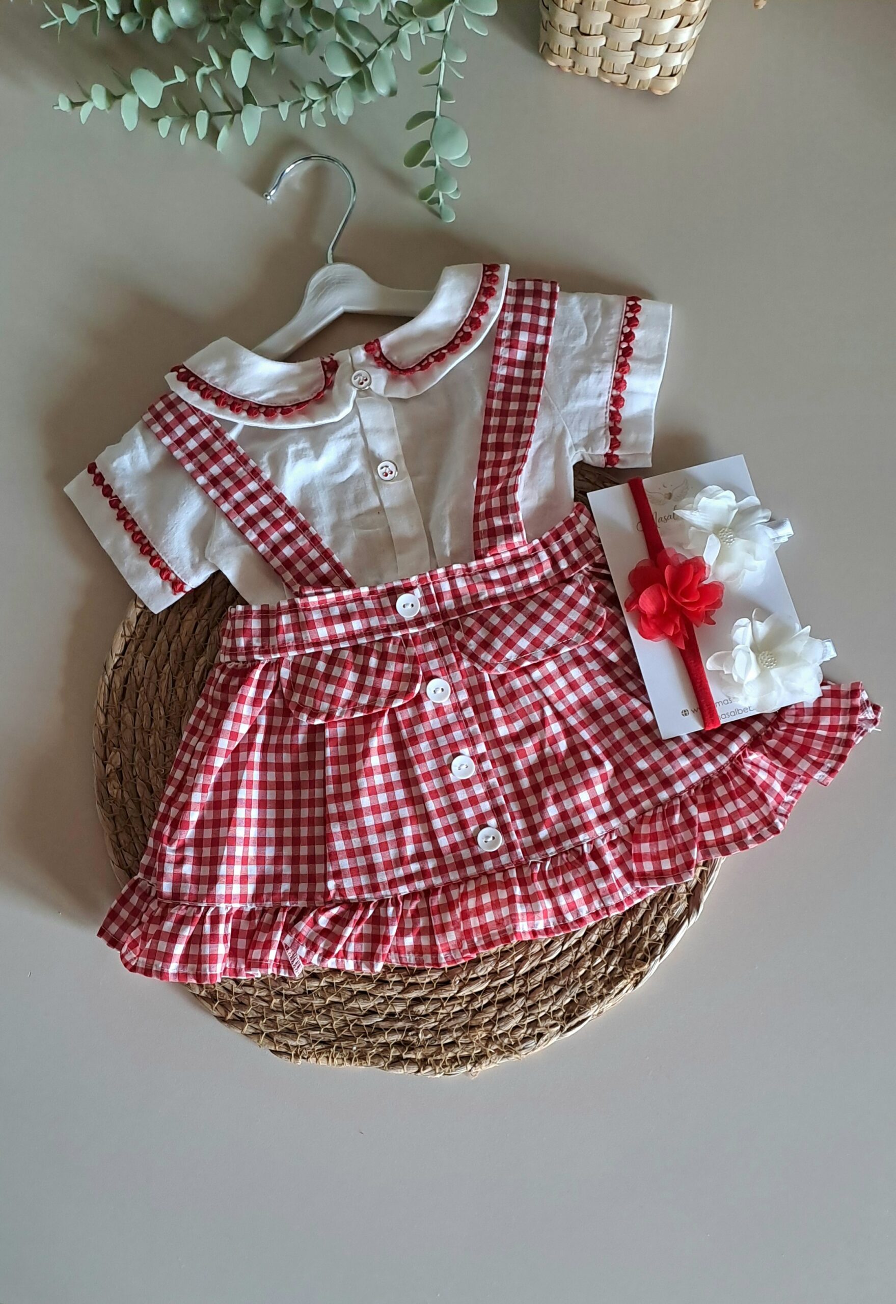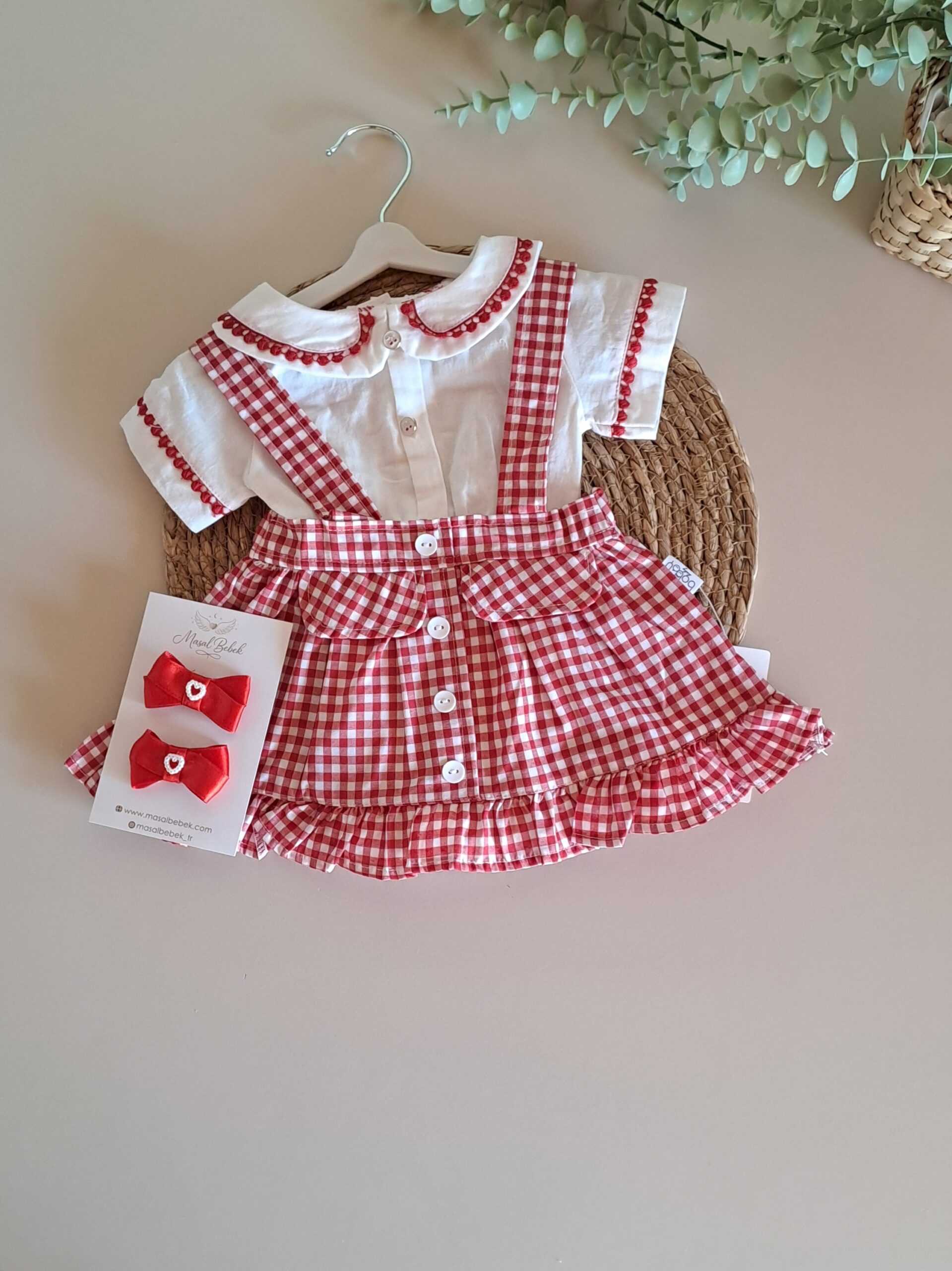 Kırmızı Ekose Desen Zıbınlı Bady Salopetli Kız Bebek Takım %100 Pamuk (Küçük Kalıptır);