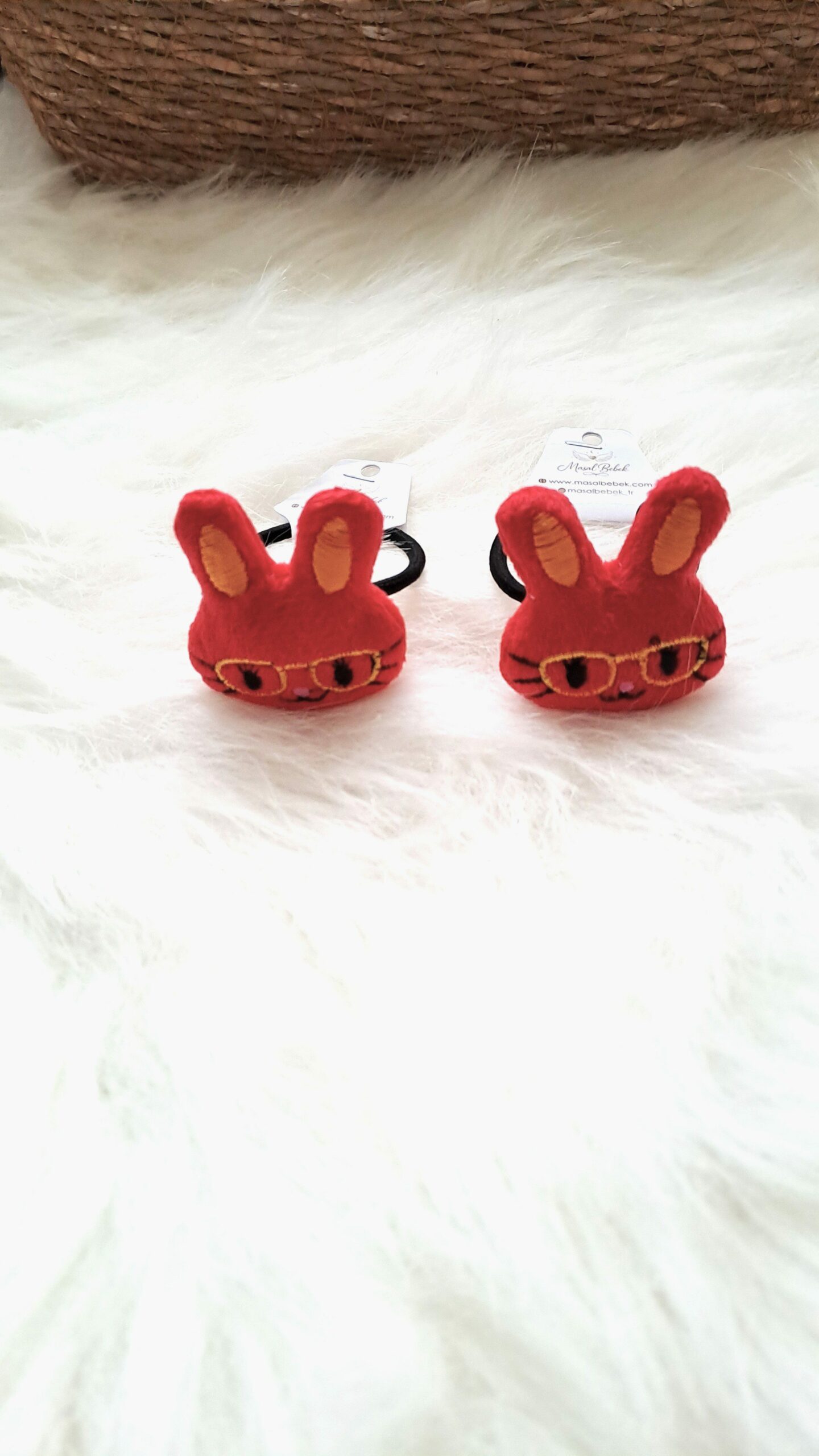 Kırmızı Tavşan Saç Lastik Toka 2’li Set