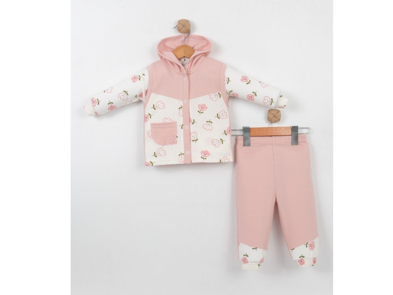 Kız Bebek Lale Model Kapüşonlu 3lü Takım