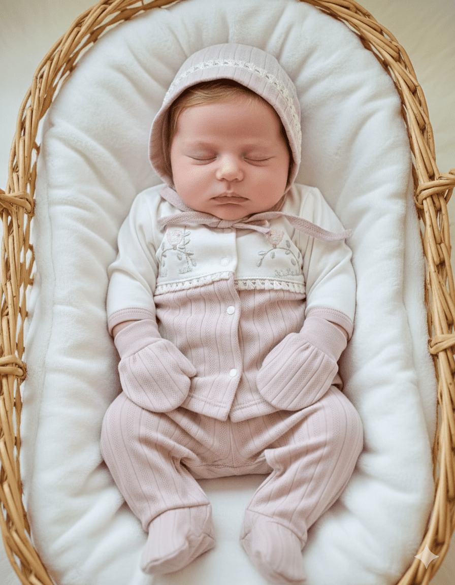 5li zıbın seti 0-3 ay (56 cm) kuş ve çiçek nakışlı, püskül detaylı; setimiz üst zıbın, patikli pantalon, önlük, eldiven ve bereden oluşmaktadır. Bebeğinizin hassas cildi için en doğallık ve şıklık bir arada. Yaka kısmında yer alan narin kuş ve çiçek nakışları, tasarıma zamansız bir zarafet katıyor. Terletmeyen ve nefes alan %100 pamuklu 1. sınıf kumaştan üretilmiştir. Bu özel set, yüksek güvenlik standartları ile tasarım şıklığını kaliteyle birleştiriyor. Üretim aşamasında bebeğinizin sağlığına zarar verecek kimyasallar, azo boyalar kullanılmamıştır. Kullanılan çıtçıt ve aksesuarların tamamı nikel içermez .Ürünün yüksek kalite standartları, dünyanın en prestijli tekstil sertifikalarından biri olan OEKO-TEX Gold belgesiyle tescillenmiştir. Anti alerjik bir üründür.30 derecede yıkanması tavsiye edilir.