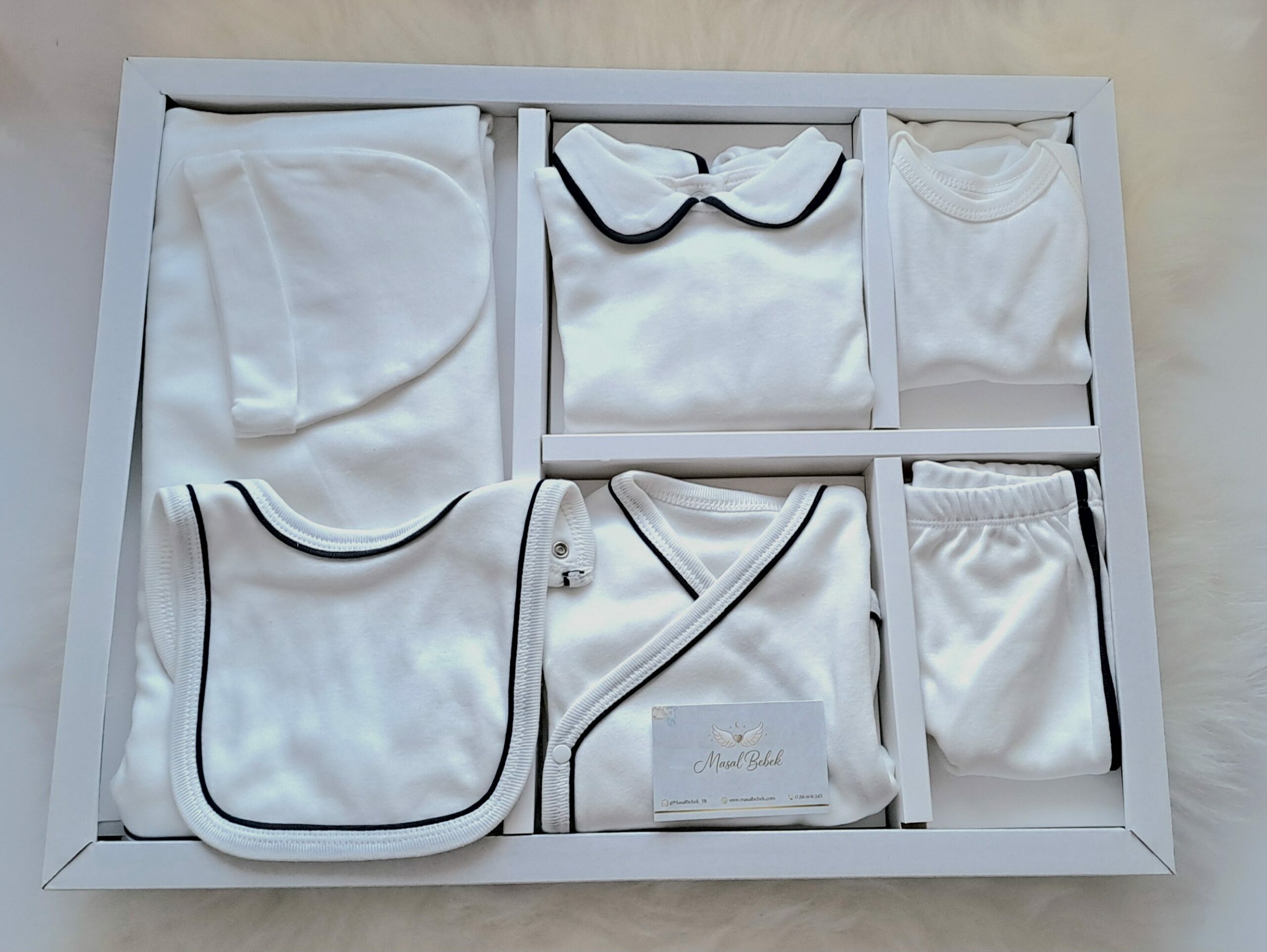 Bu set sadeliğin ve asaletin mükemmel uyumunu arayan ebeveynler için tasarlanmış, zamansız sade bir şıklık sunuyor. Beyaz renginin huzur veren tonu üzerine lacivert biyelerle işlenen kontrast detaylar, bebeğinize hem klasik hem de modern bir hava katıyor. Minimalist çizgiyle göz yoran süslemelerden uzak, sadece saf bir zarafete odaklanıyor, dokusu yumuşacıktır, yeni doğan hassasiyetine uygun olarak tasarlanmıştır. Bebek çeyizlerinde olması gereken klasiklerden özel bir parçadır.B ebek sağlığını yüksek kalite standartlarıyla buluşturan Masal Bebek, en değerli varlıklarınız için güvenli ve nitelikli ürünler sunar.