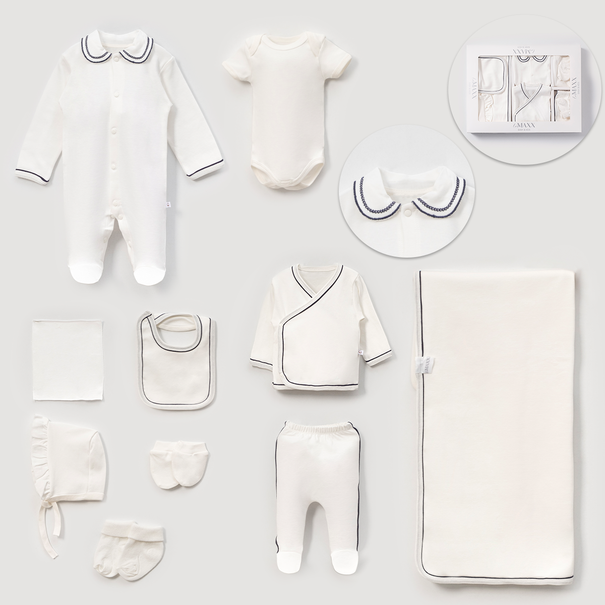 Lacivert Çizgili Bebe Yaka Premium 10lu Hastane Çıkış Seti