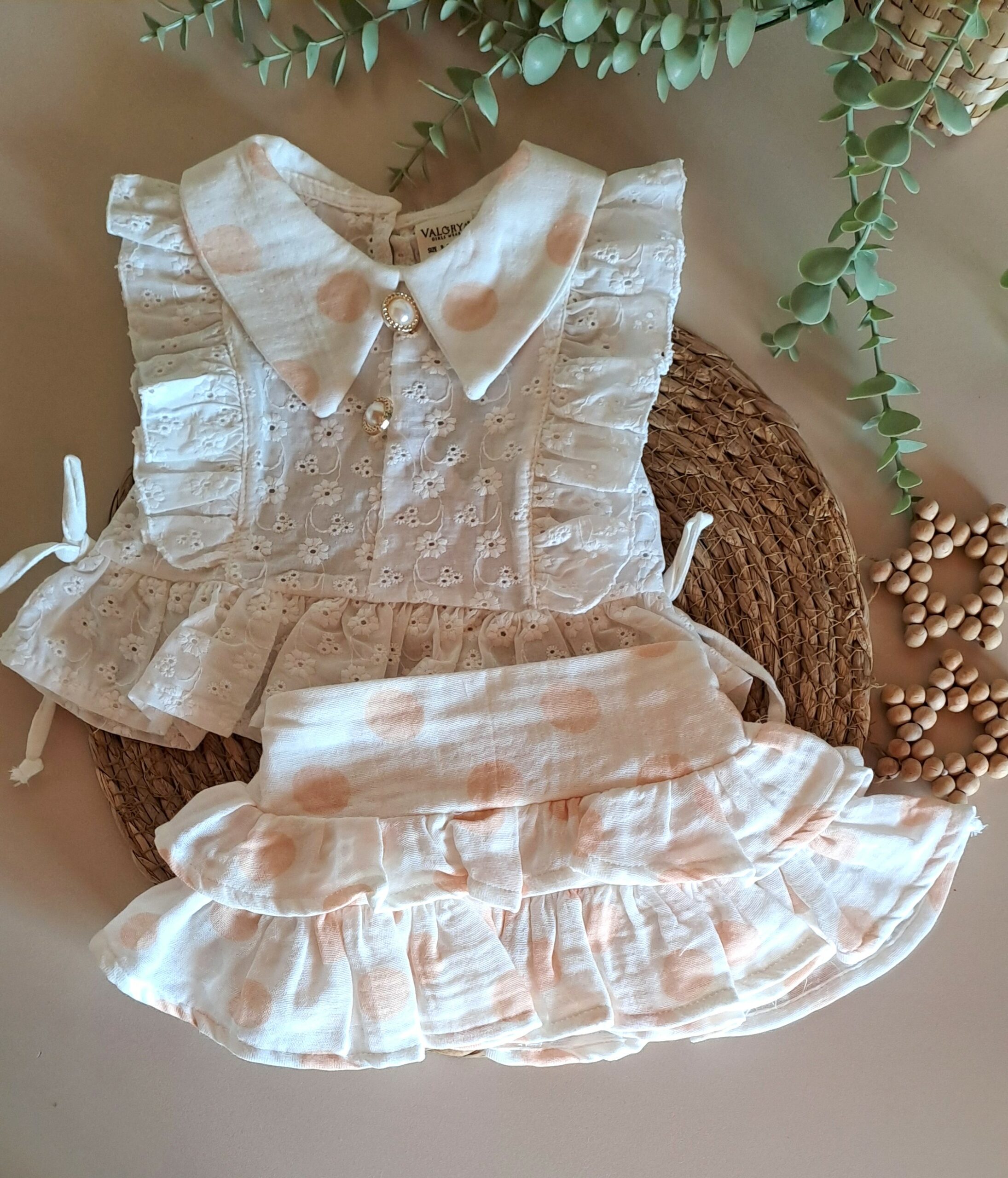 Bebeğinizin zarafeti, doğallığın en şık haliyle tanışıyor. %100 pamuk müslin fırfırlı eteğin masalsı hafifliği, nostaljik fisto bluzun düğme detaylarıyla birleşti. Her bir nakışı incelikle işlenmiş fisto bluz ve yıkandıkça yumuşayan müslin etek, özel kutlamalardan pazar yürüyüşlerine kadar her anı unutulmaz kılacak. Bebeğinizin cildi nefes alsın, tarzı masalları kıskandırsın.