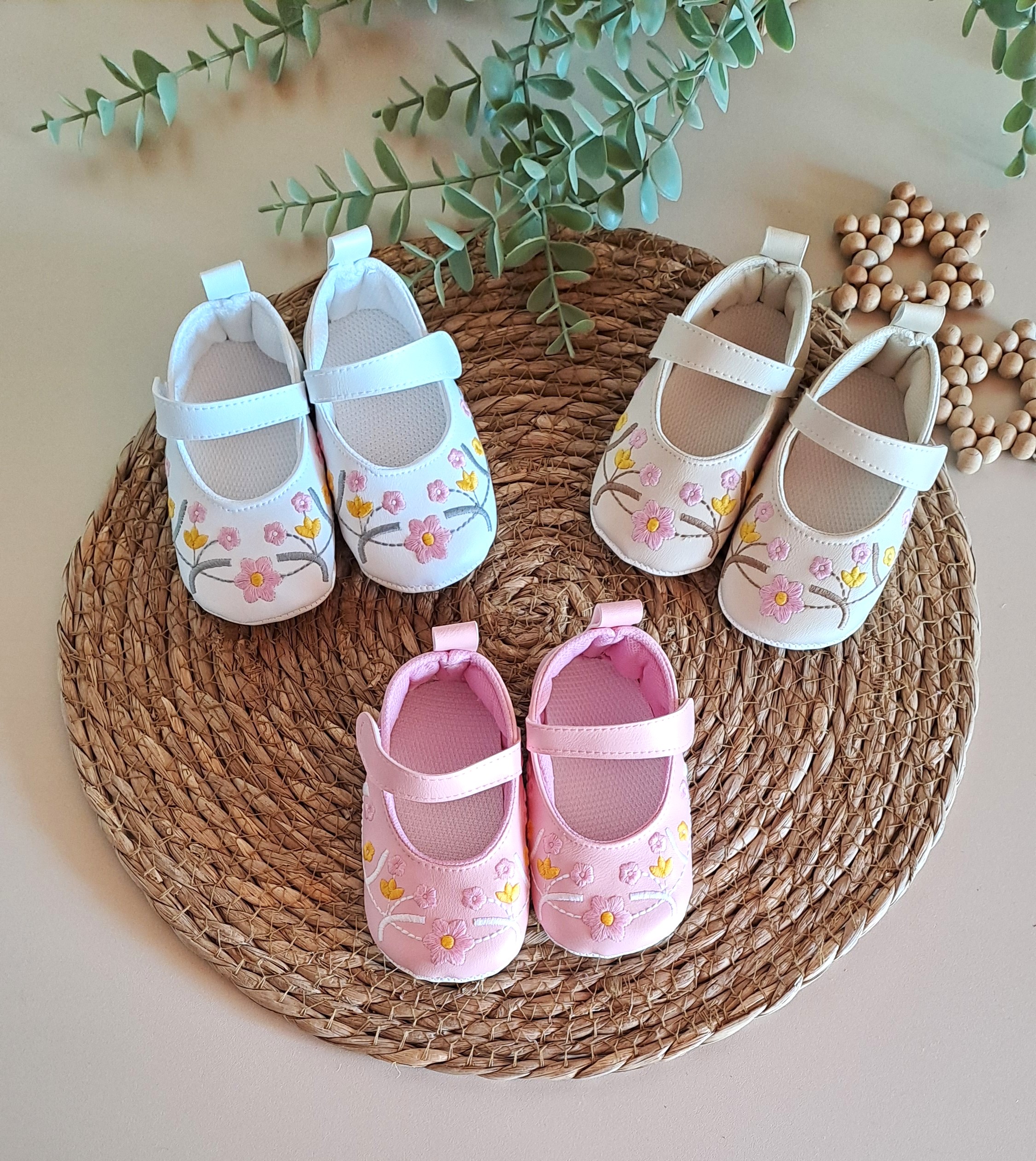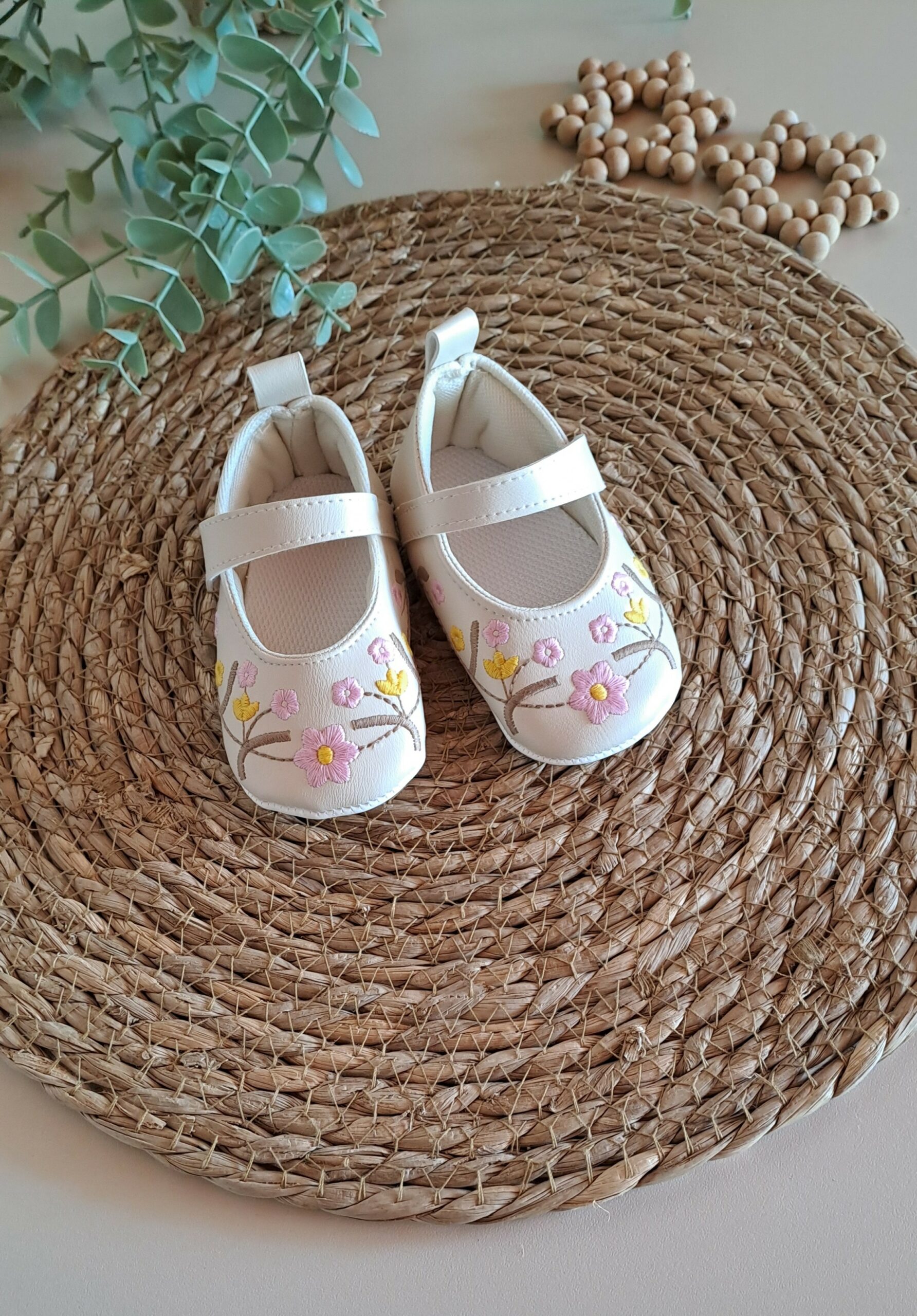 Minik adımlara zarafet katacak bu koleksiyon; pastel tonların huzurunu, el işçiliği hissi veren zarif çiçek nakışlarıyla birleştiriyor. Hem özel günlerde elbiselerin altına eşlik edecek kadar şık, hem de günlük kullanımda bebeğinizi rahat ettirecek kadar hafif bir tasarıma sahip.