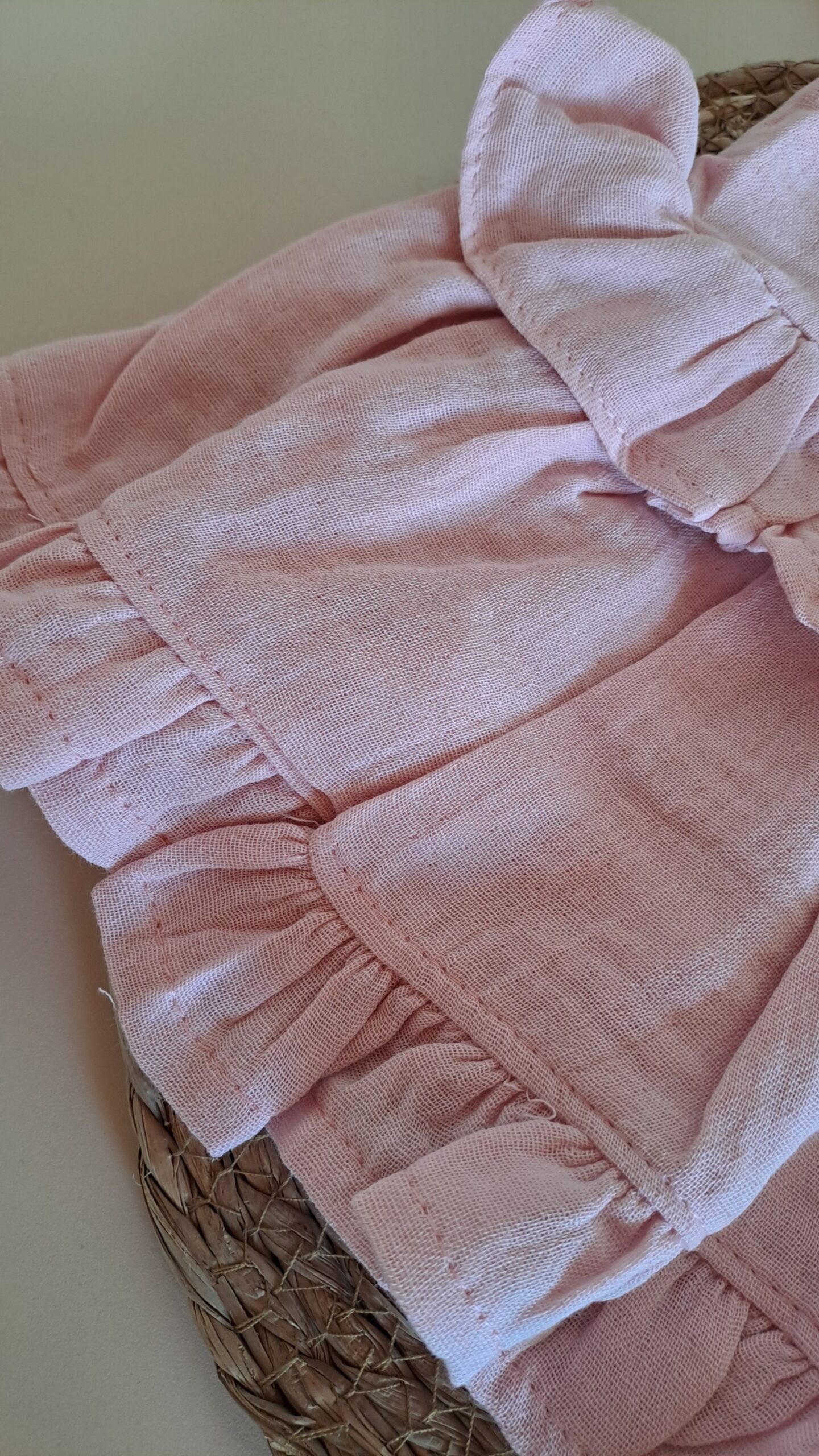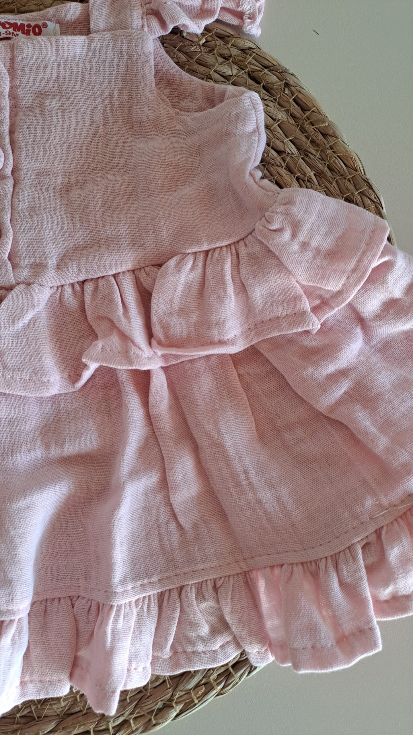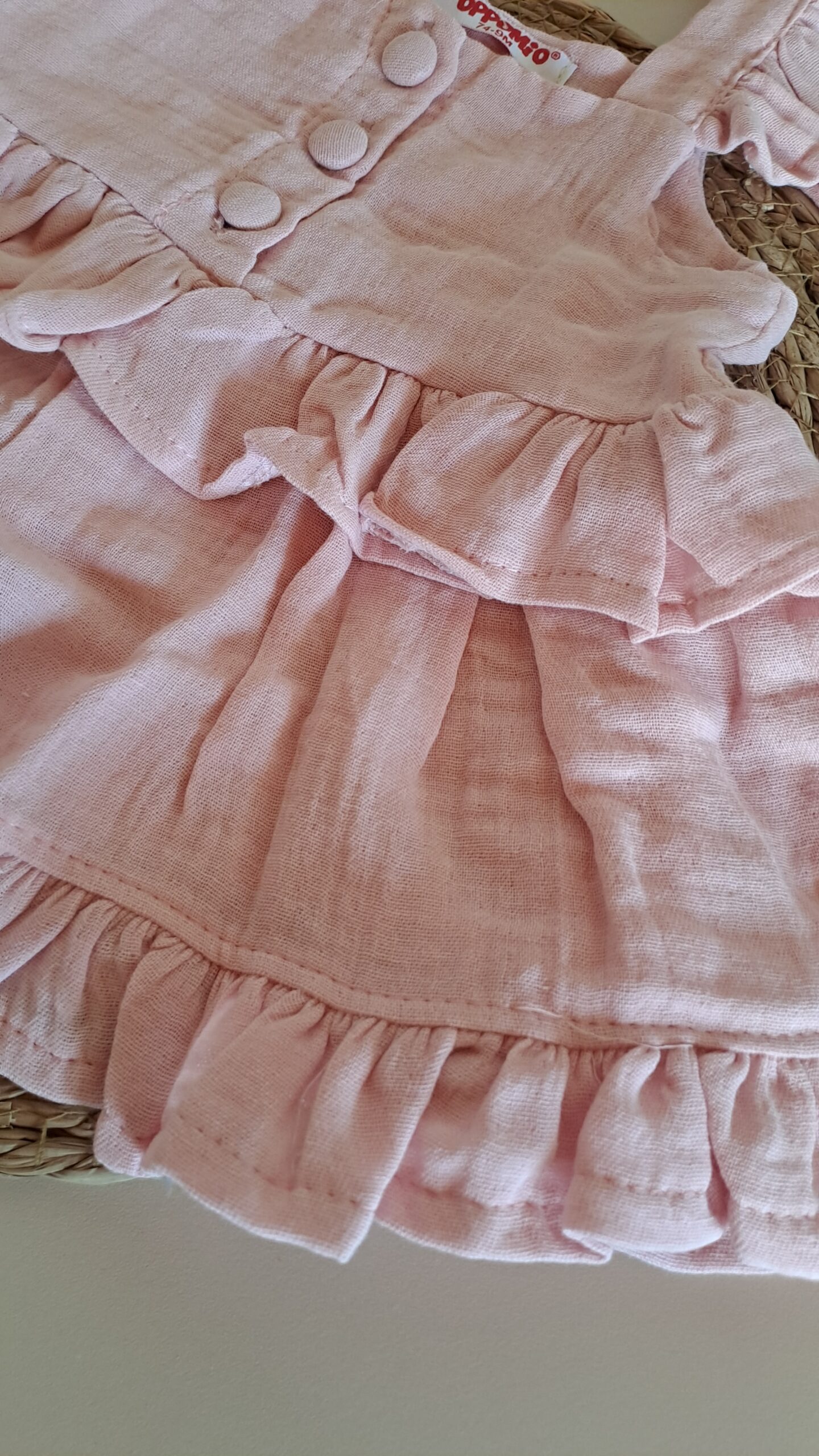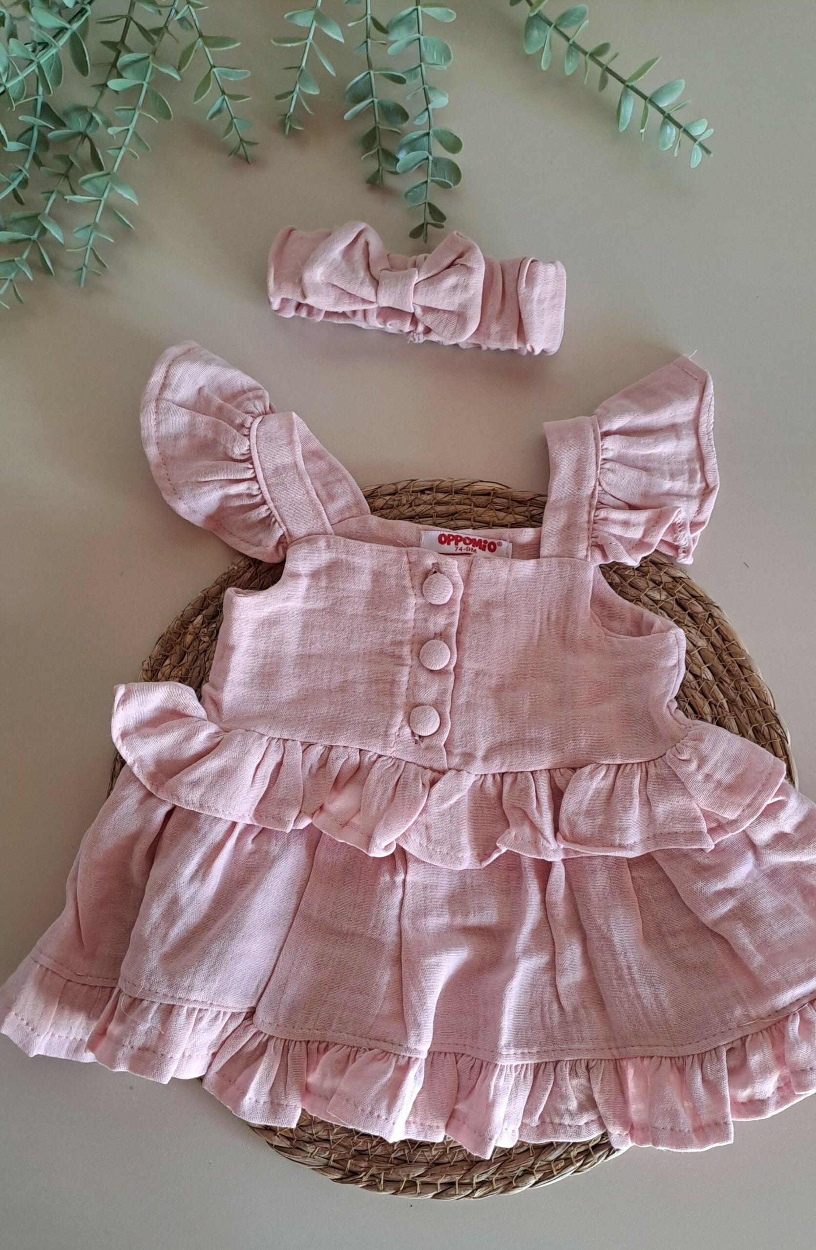 Omuz Askılı Bandanalı Müslin %100 Pamuk Elbise;en sevilen omuz askılı müslin takımımız, şimdi kendi dokusundan uyumlu bandanasıyla bir arada! %100 pamuk müslin kumaşın nefes alan saflığı, bebeğinizin tarzını tamamlayan zarif bir bandana ile buluştu. Yazın en sıcak günlerinde bile ferahlık sunan bu ikili set, hem konforu hem de masalsı şıklığı bir arada arayan ebeveynler için tasarlandı. Bebeğinizin her anı bir fotoğraf karesi kadar özel olsun. Aksesuar kullanarak özel gün çekimleri için tercih edebilirsiniz.