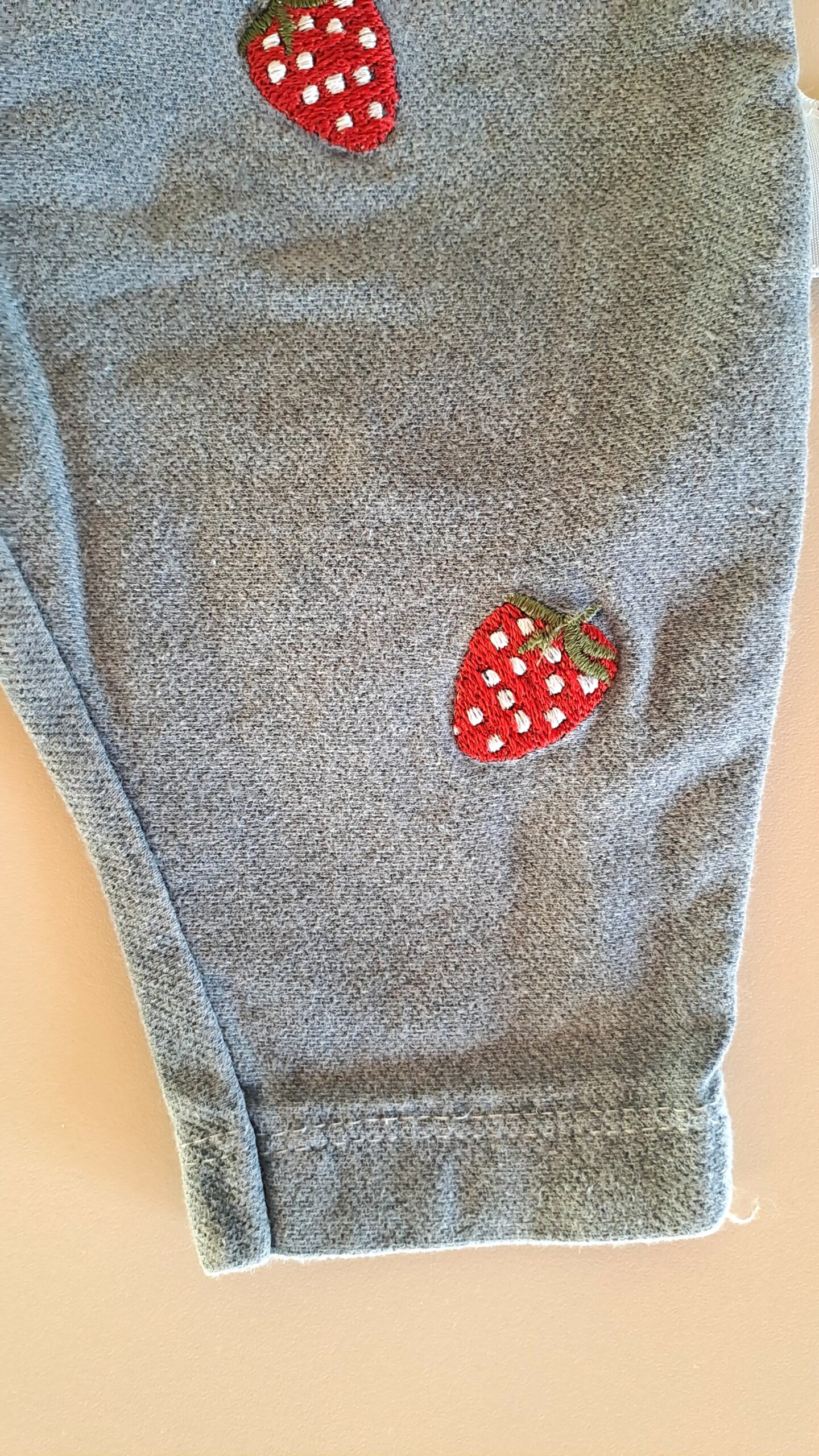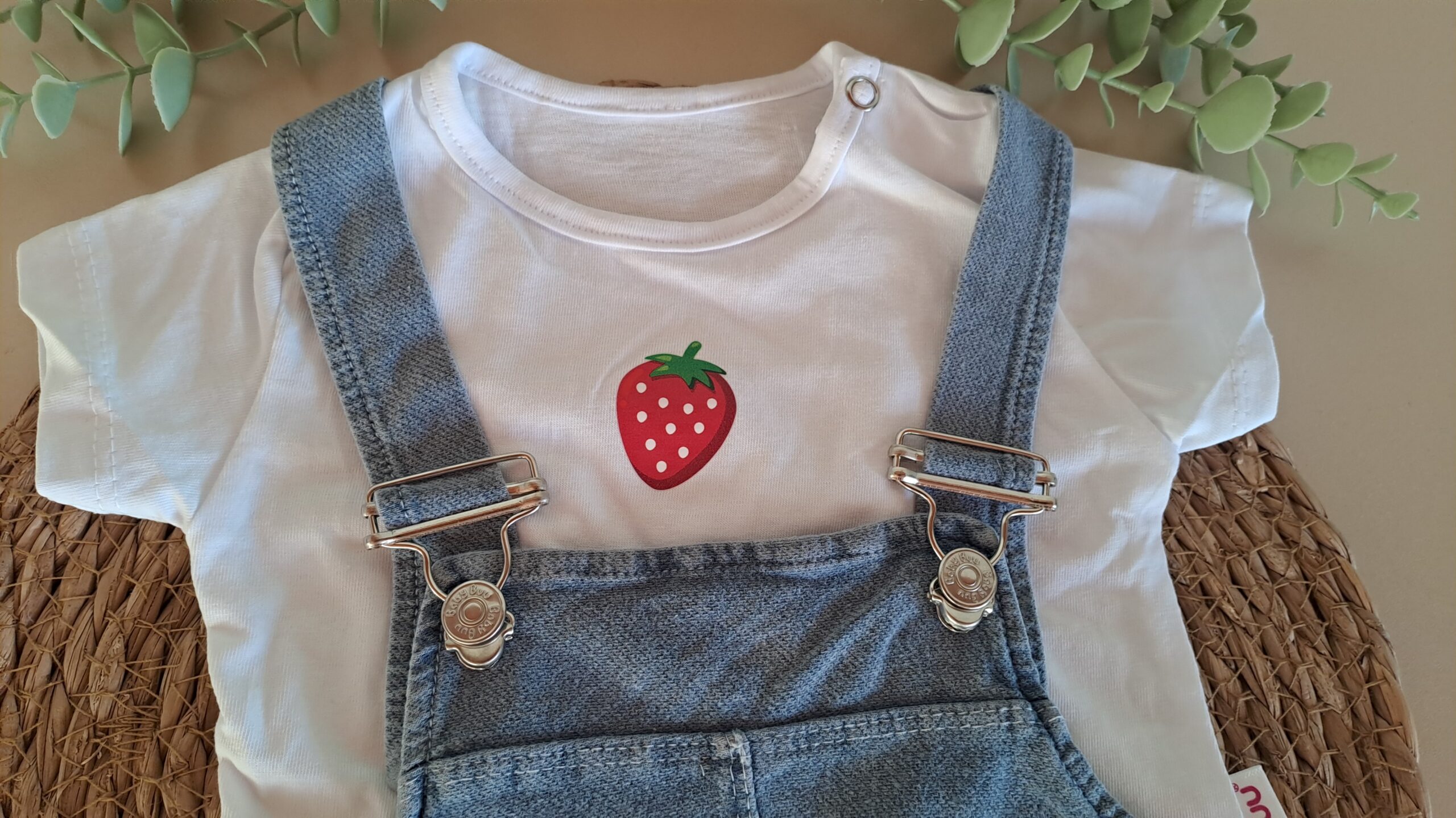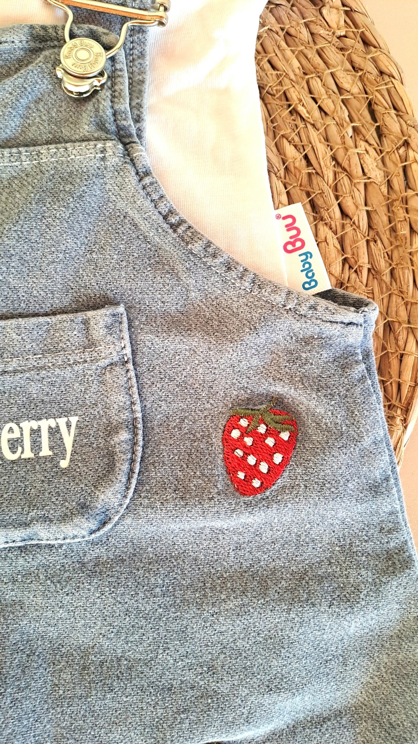 Pamuk Çilek Nakışlı Kot Salopet ve Tişört %100 Pamuk