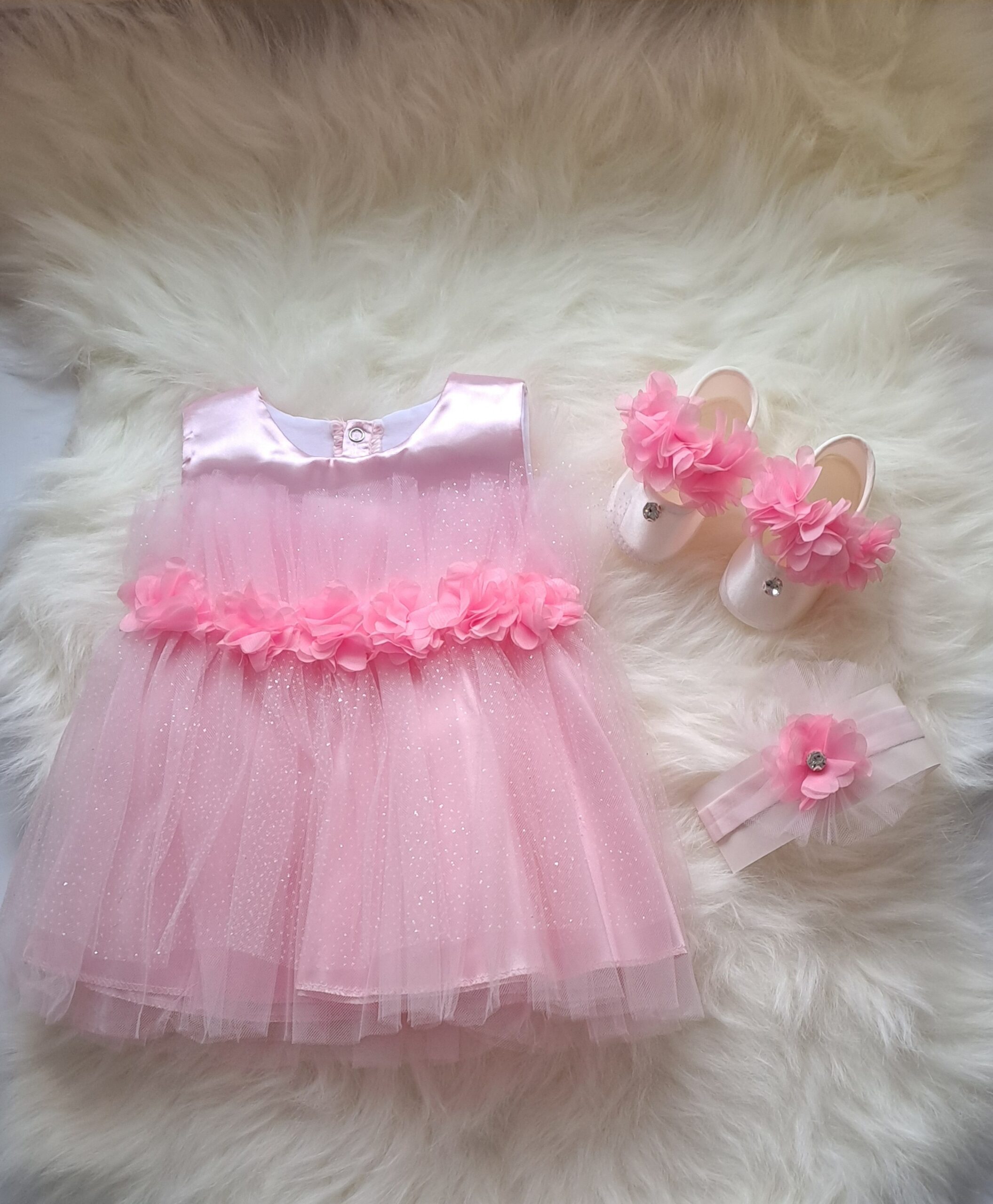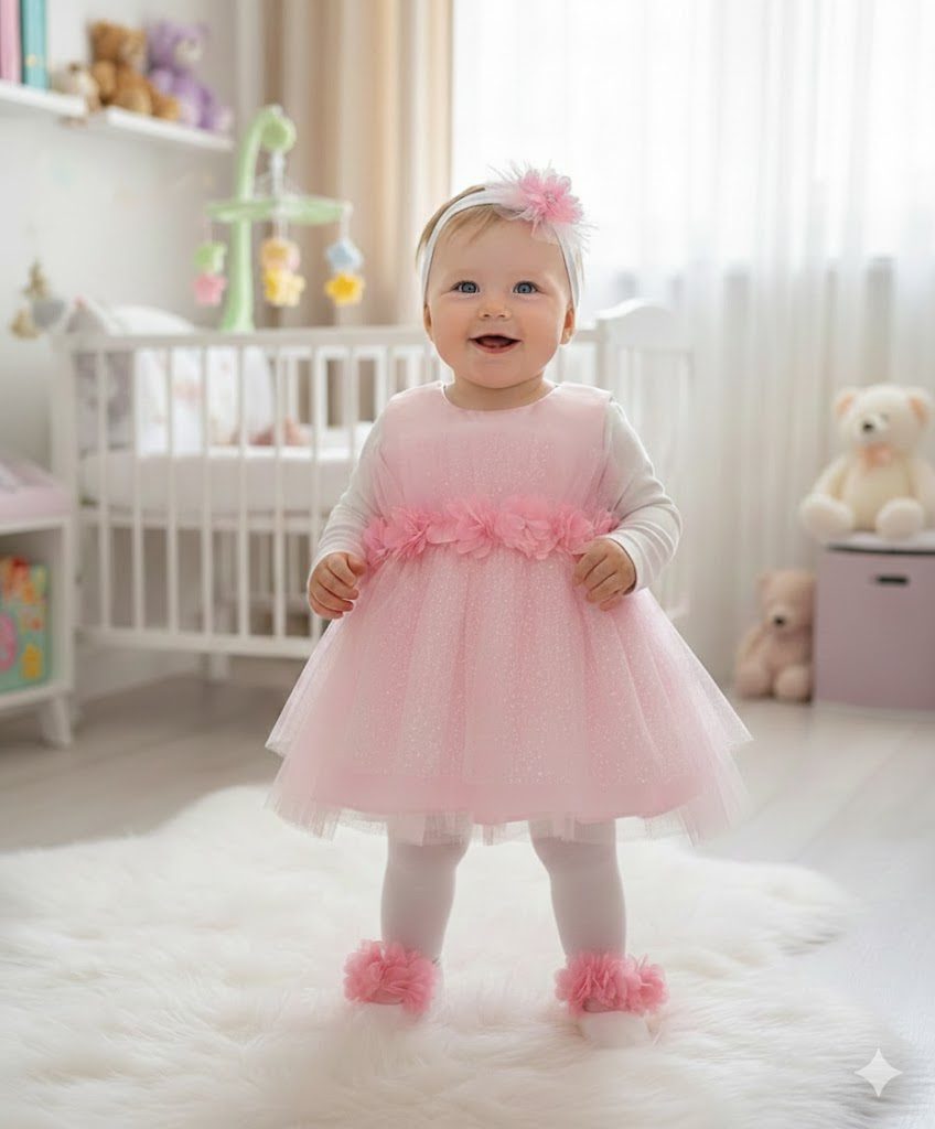 Özel günler için zarif ve şık bir tasarım sunar. Çiçek detayları ve parlak tül süslemeleriyle öne çıkan bu bebek mevlit takımı, minik prensesinizi adeta bir masal perisine dönüştürecektir. Yavrunuzun bu özel gününde fotoğraf çekimleri için de vazgeçilmez bir tercih olacaktır.