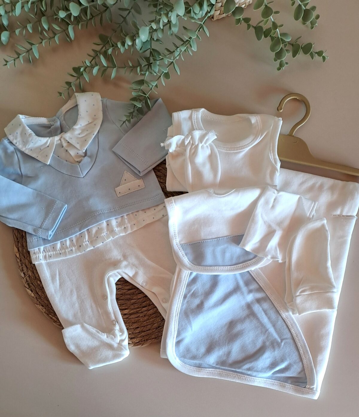 Puantiyeli Mavi 7Li Battaniyeli Hastane Çıkış Seti