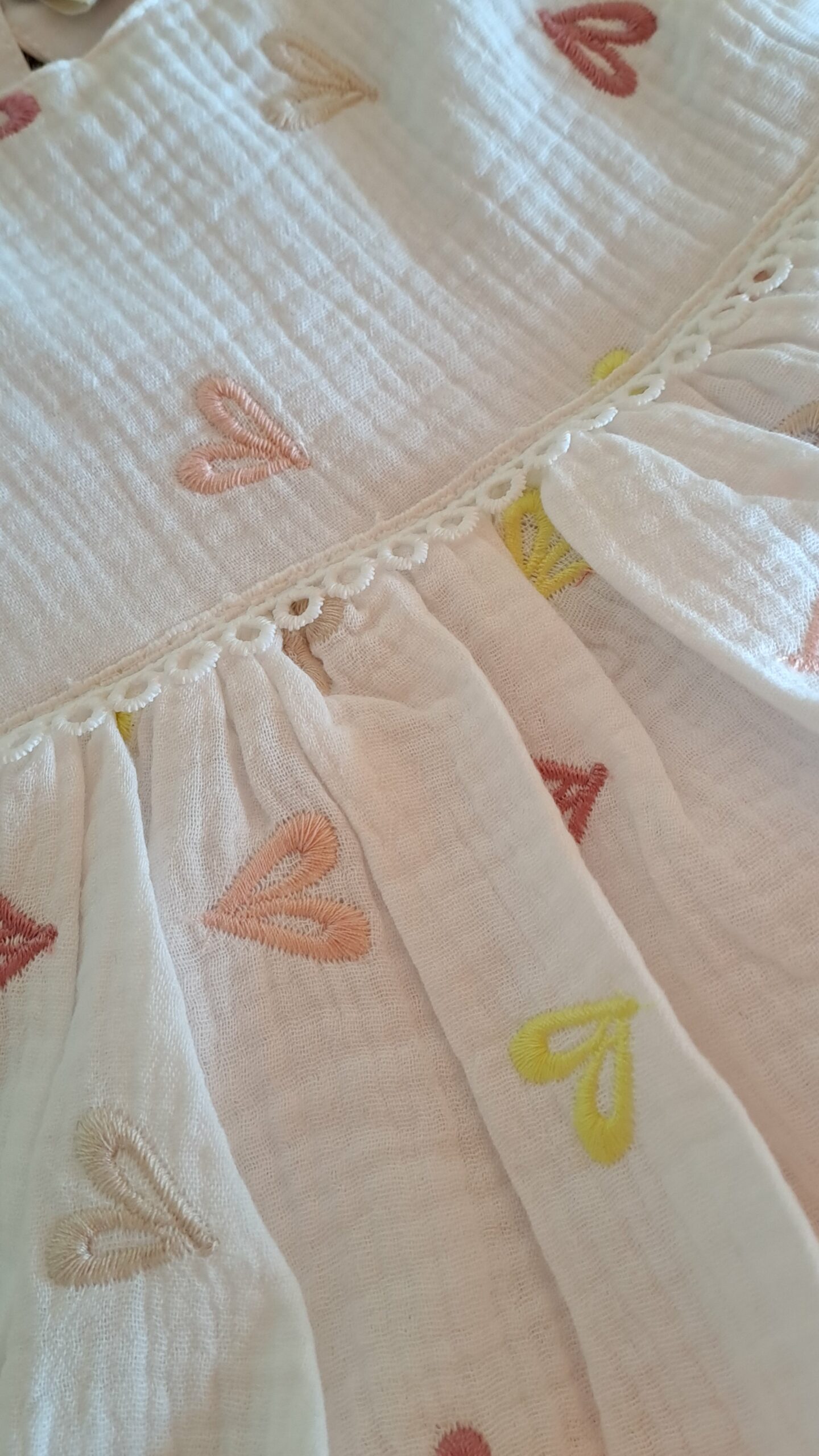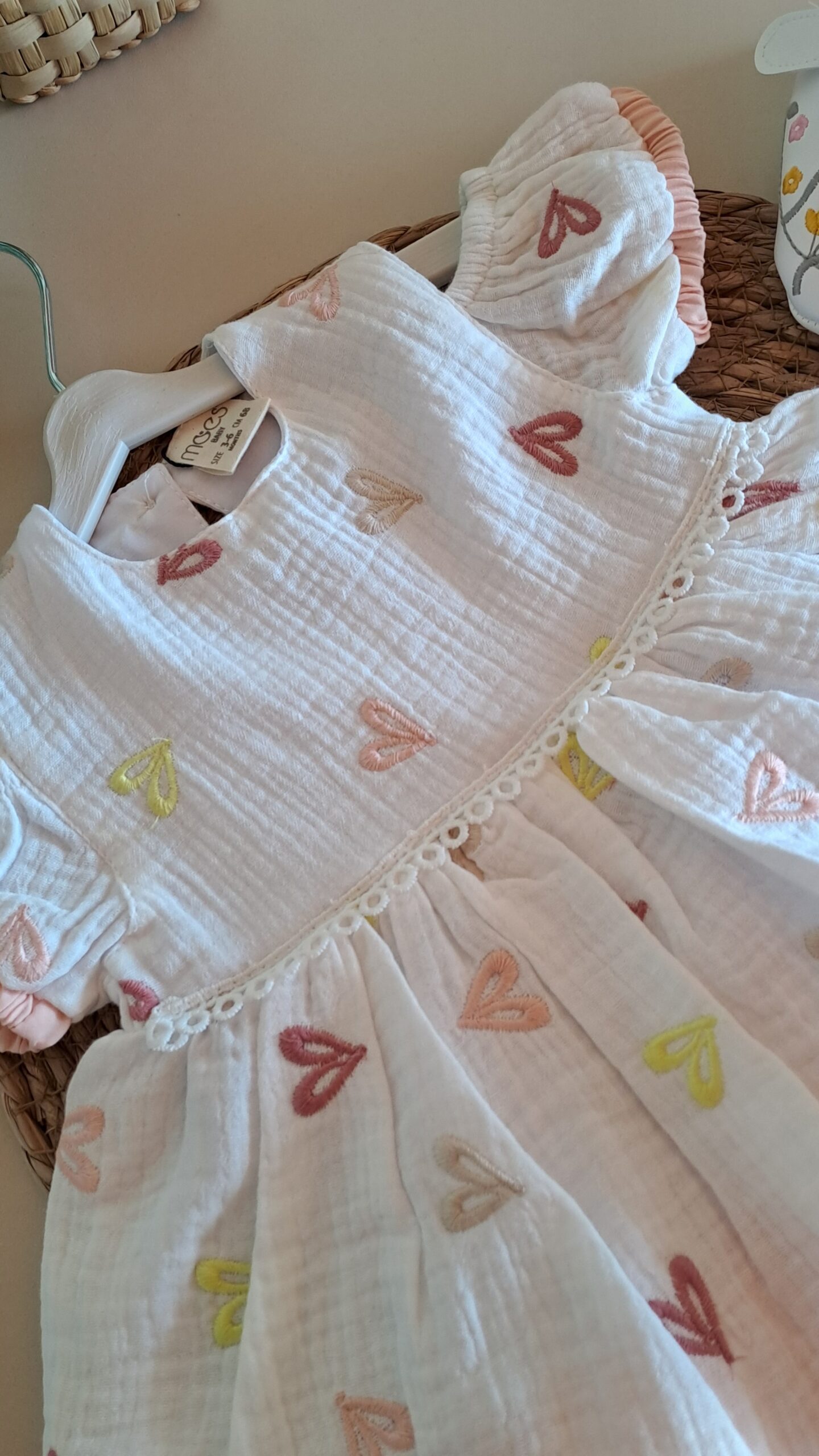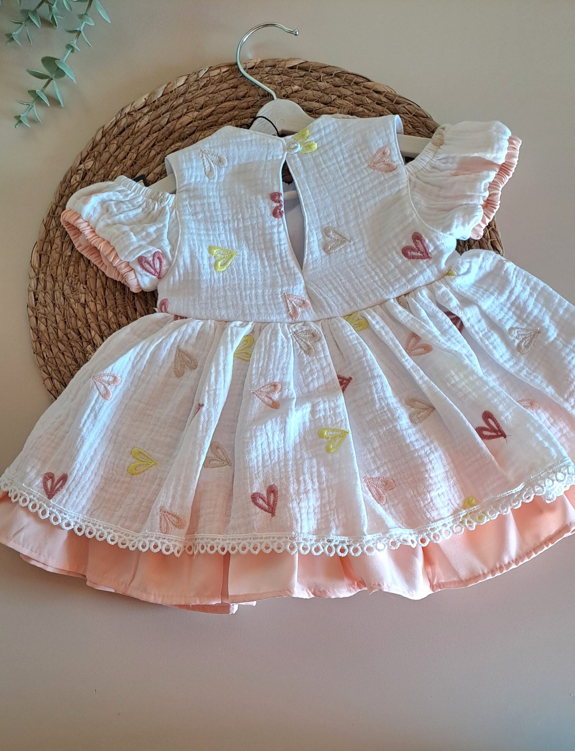 Renkli Kalpli Müslin Elbise %100 Pamuk; doğanın en saf dokunuşunu kalpli rengarenk neşeli detaylarla buluşturan elbisemiz, miniklerin dünyasına enerji katmaya geliyor. Tamamen doğal yapısı ve zamansız tasarımıyla, bebeğinizin konforunu şıklıkla taçlandırıyor. Üretim sürecinde kullanılan doğal pamuk iplikleri, miniklerin hassas cildine doğallığın en yumuşak dokunuşunu taşırken, içeriğinde hiçbir zararlı veya kanserojen madde barındırmaz. Hiçbir sentetik madde içermeyen, tamamen bitkisel kaynaklı pamuk dokuma.