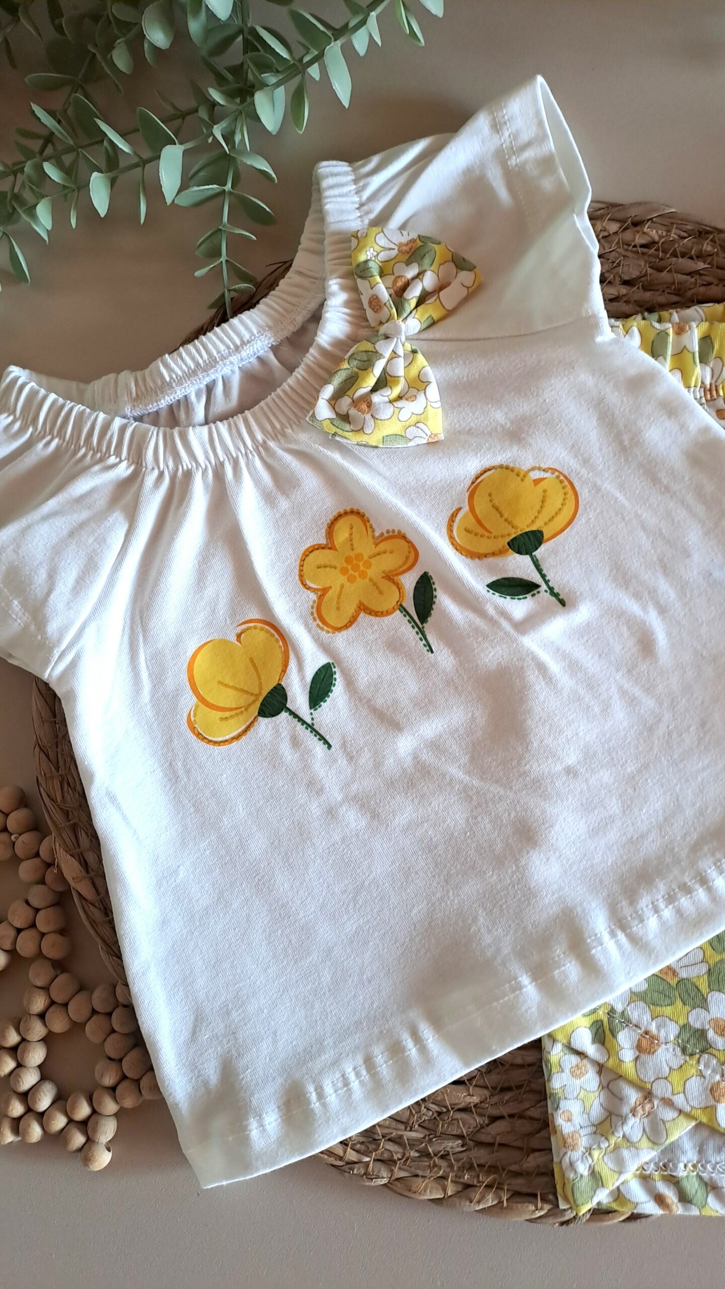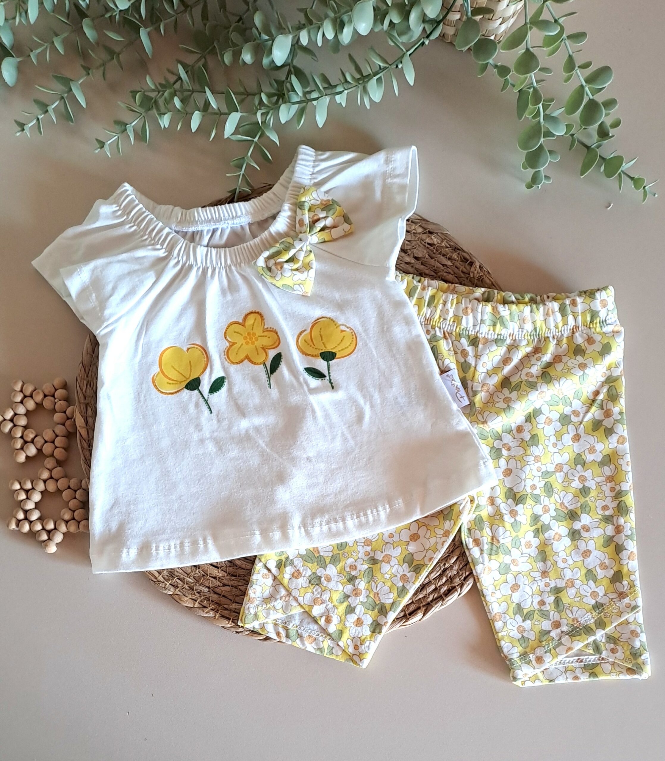 Yazın neşesini bebeğinizin gardırobuna davet edin! Pamuk dokusuyla üretilen sarı çiçekli takımımız, hem enerjik rengi hem de zarif desenleriyle göz kamaştırıyor. Doğal lifli yapısı sayesinde en sıcak günlerde bile bebeğinizin cildi nefes alır, ferah kalır. Parkta, plajda veya hafta sonu gezmelerinde; tarzı güneş gibi parlasın, konforu masalları kıskandırsın.