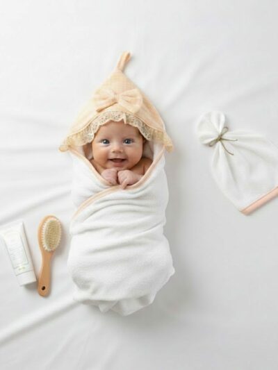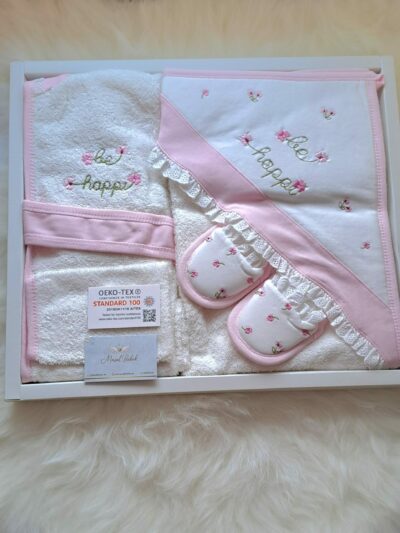 Bu set, bir bebeğin banyo sonrası ihtiyacı olan temel parçaları bir araya getiriyor: