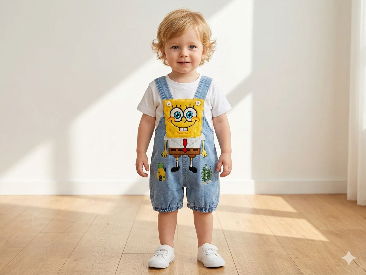 Erkek Bebek Sünger Bob Kot Salopet Takım ile şıklığı ve konforu bir araya getiriyor. Bu özel tasarım, hem günlük kullanım hem de özel günler için ideal bir seçenek sunmaktadır.