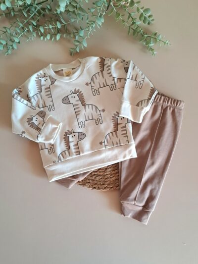 Tasarım: Minimalist kesim, doğal ahşap görünümlü düğmelerle tamamlanmış doğal bir takım.