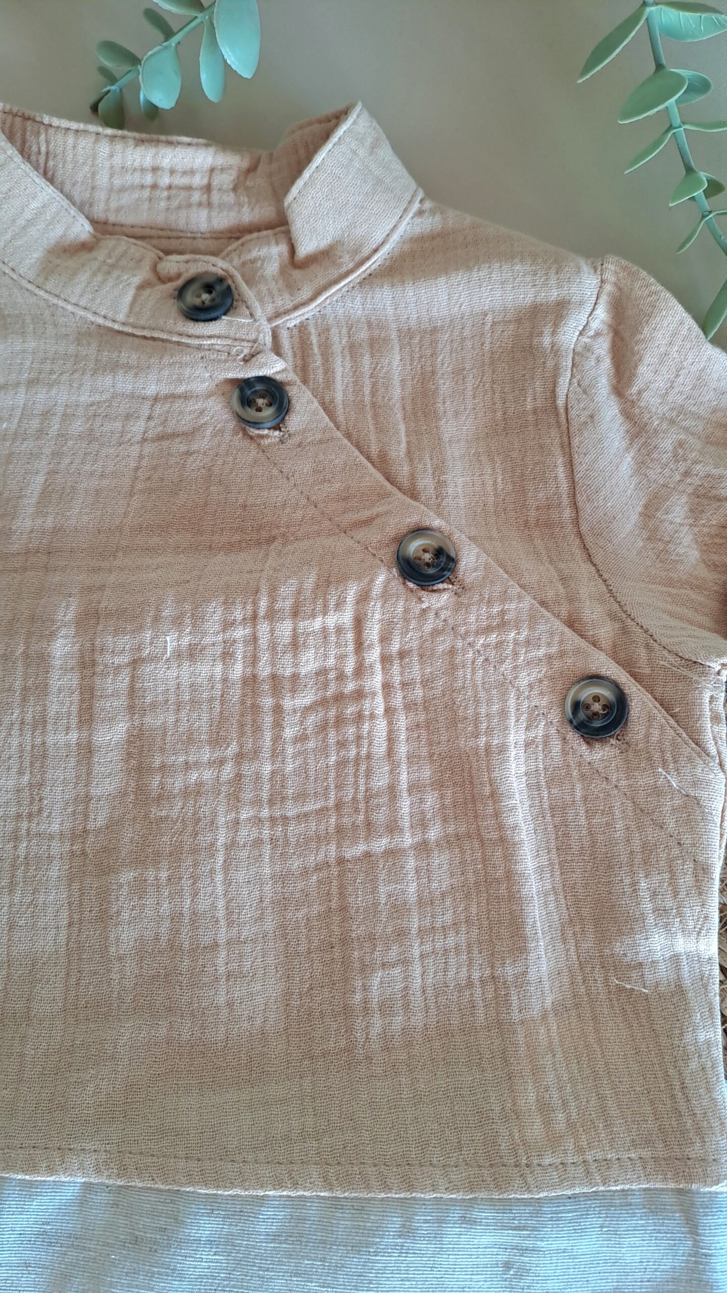 Düğme detaylı müslin takımlar, özellikle hem şıklığı hem de bebek tenine uygun konforu birleştirdiği için çok tercih edilen modellerdir.