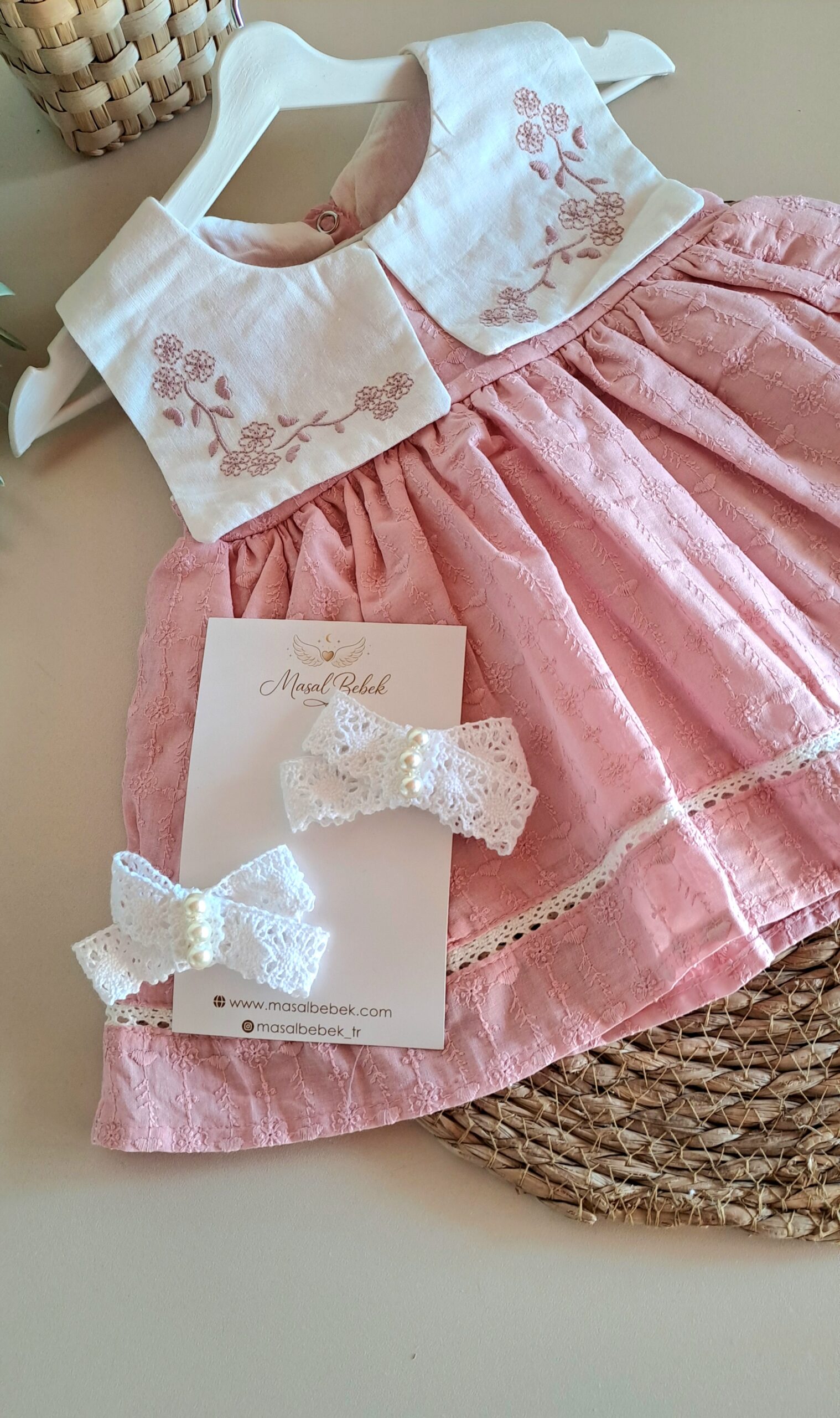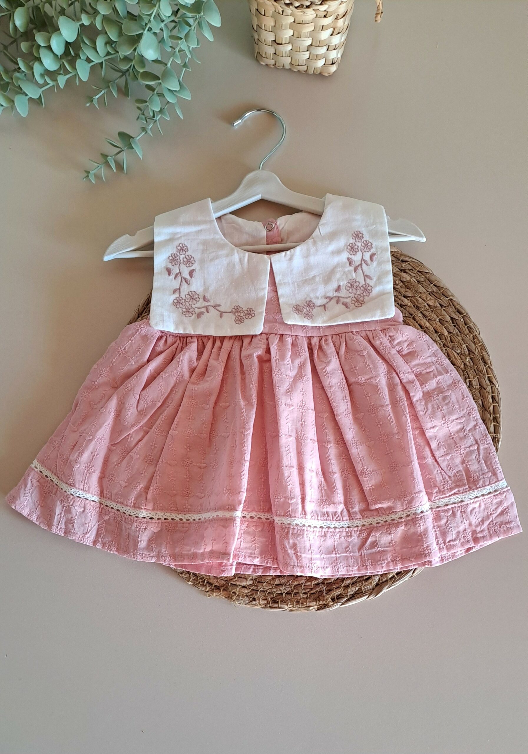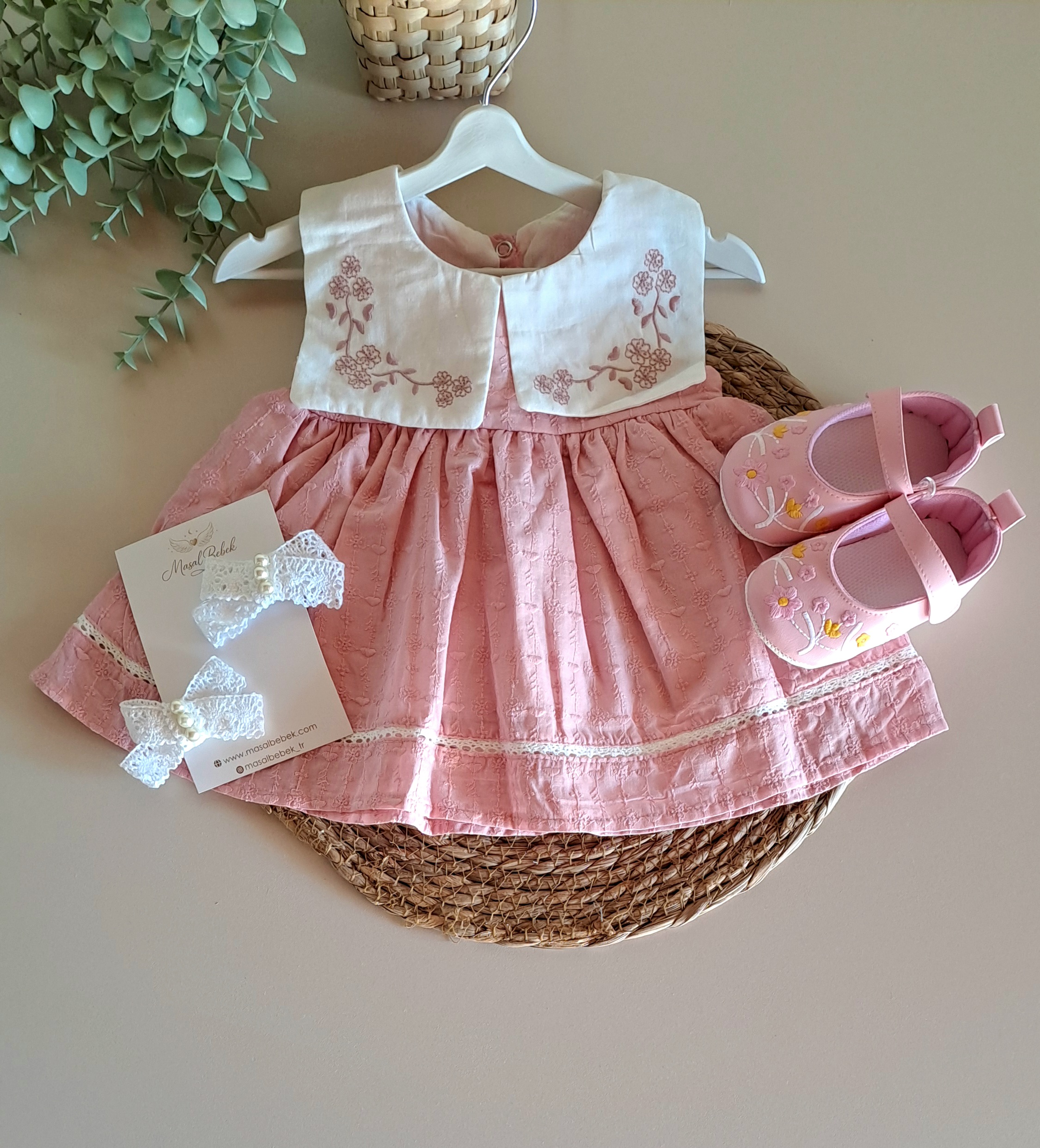 Yakası Çiçek Nakışlı Kare Yakalı Pudra Elbise %100 Pamuk; Pudra tonlarının sakinliğini ve çiçeklerin enerjisini bir araya getiren bu özel tasarım, kız bebek gardıroplarına masalsı bir dokunuş katıyor. Her dikişinde zarafetin ön planda tutulduğu bu parça, bebeğinizin doğal güzelliğini vurgularken gün boyu süren bir konfor alanı yaratıyor. Tasarımın en dikkat çekici noktası olan yaka kısmındaki ince çiçek nakışları, klasiğe modern bir yorum getiriyor. .Özellikle sıcak günlerde bebeğinizin ferah kalması için tasarlanan hafif kumaş yapısı, cildin nefes almasına yardımcı olur. Tüm aksesuarlarla kombin yaparak özel gün çekimleri için de kullanabilirsiniz.