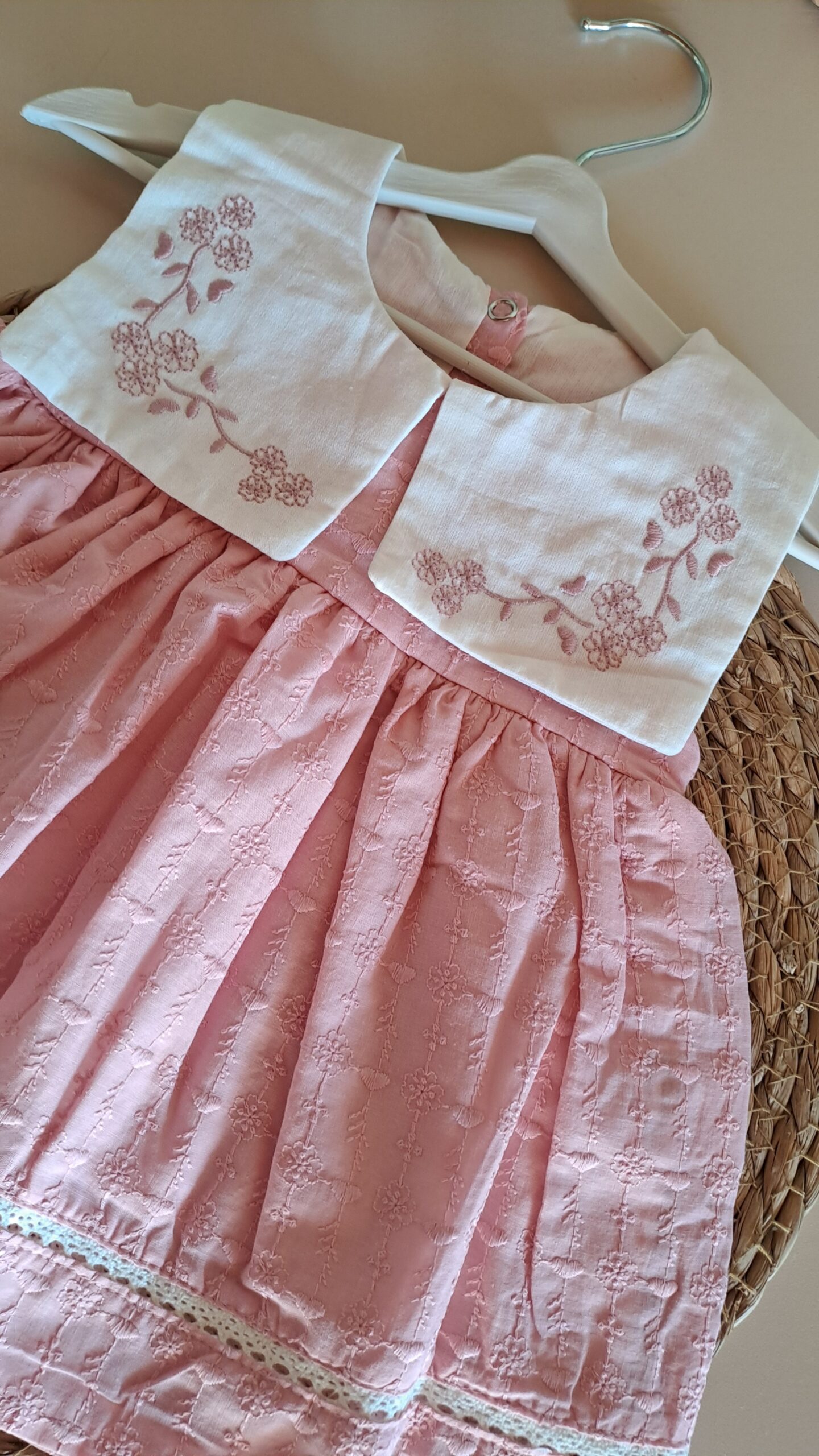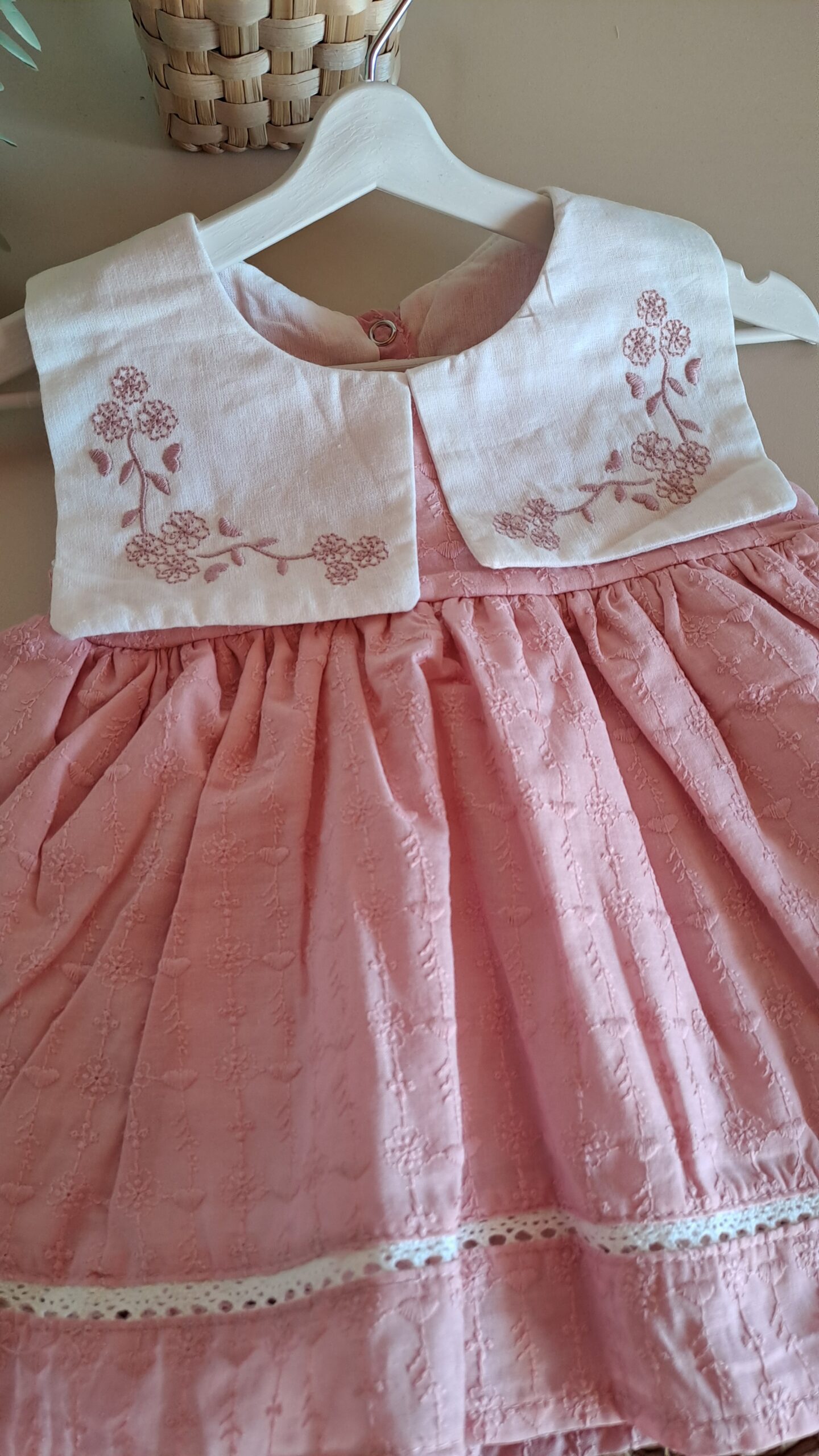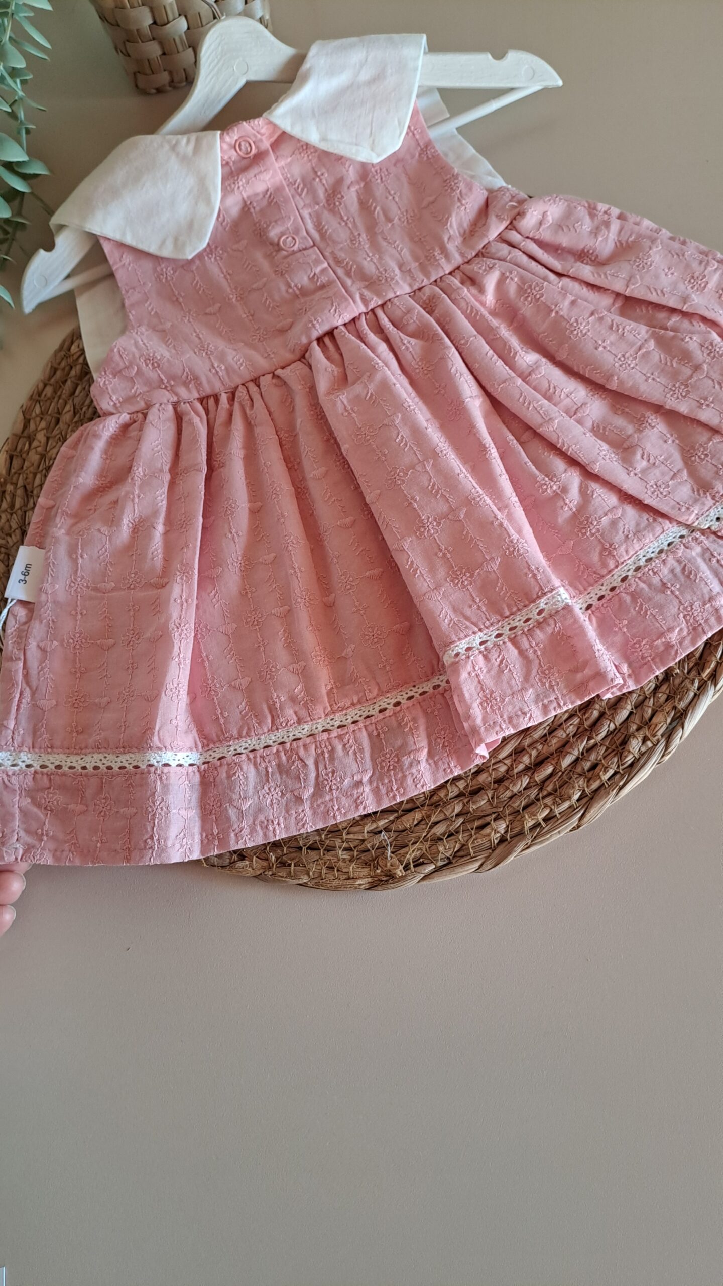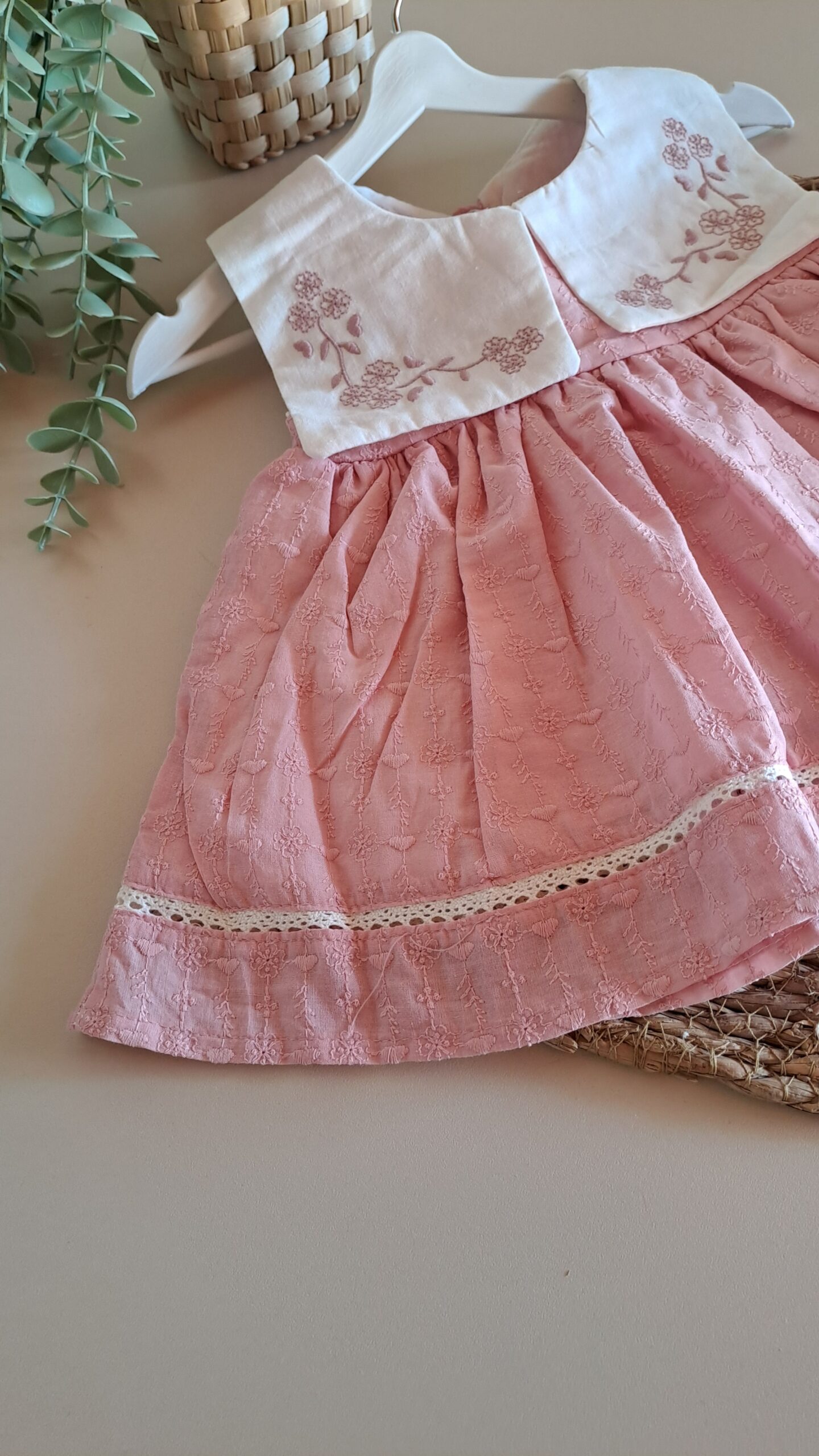 Yakası Çiçek Nakışlı Kare Yakalı Pudra Elbise %100 Pamuk; Pudra tonlarının sakinliğini ve çiçeklerin enerjisini bir araya getiren bu özel tasarım, kız bebek gardıroplarına masalsı bir dokunuş katıyor. Her dikişinde zarafetin ön planda tutulduğu bu parça, bebeğinizin doğal güzelliğini vurgularken gün boyu süren bir konfor alanı yaratıyor. Tasarımın en dikkat çekici noktası olan yaka kısmındaki ince çiçek nakışları, klasiğe modern bir yorum getiriyor. .Özellikle sıcak günlerde bebeğinizin ferah kalması için tasarlanan hafif kumaş yapısı, cildin nefes almasına yardımcı olur. Tüm aksesuarlarla kombin yaparak özel gün çekimleri için de kullanabilirsiniz.